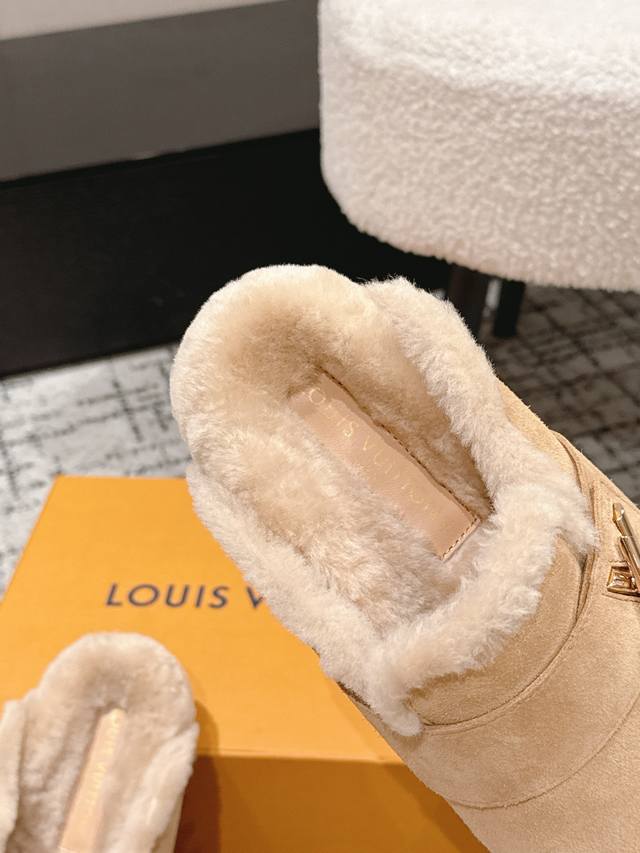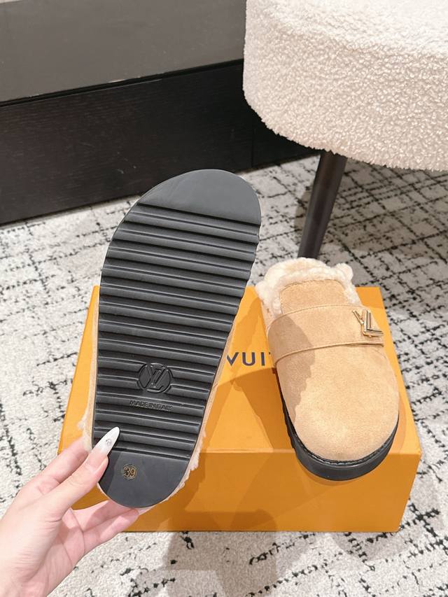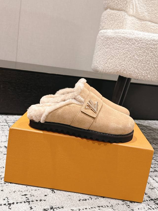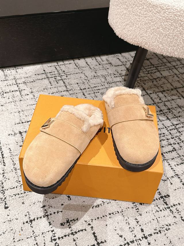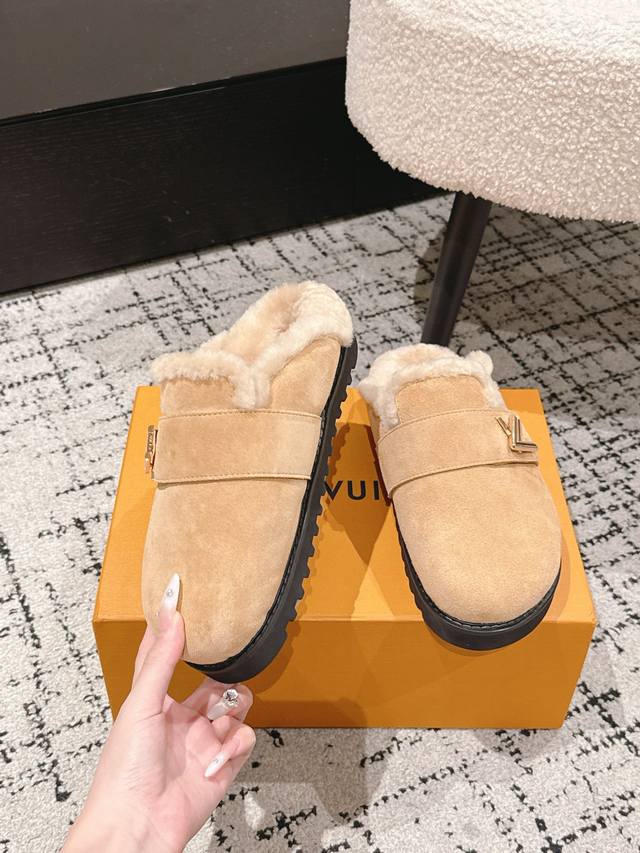 Couple Wool Slippers | Exuding a high-end feel, even the soles are luxurious. Original jacquard weave + suede upper, delicate texture, instantly high-end; 170% pure wool lining, wearing them barefoot feels like walking on clouds, soft, skin-friendly, and breathable; Non-slip rubber sole + 3D closed toe design, super stable walking, stylish and practical! A must-have for detail lovers: Belt buckle + classic LV monogram element, understated yet exuding a high-end aura. Whether for a date or a girls' outing, you'll be the center of attention. Material: Classic jacquard wool fabric; Lining: Imported wool lining; Sole: Original rubber sole; Sizes: Women's 35-41, Men's 38-46