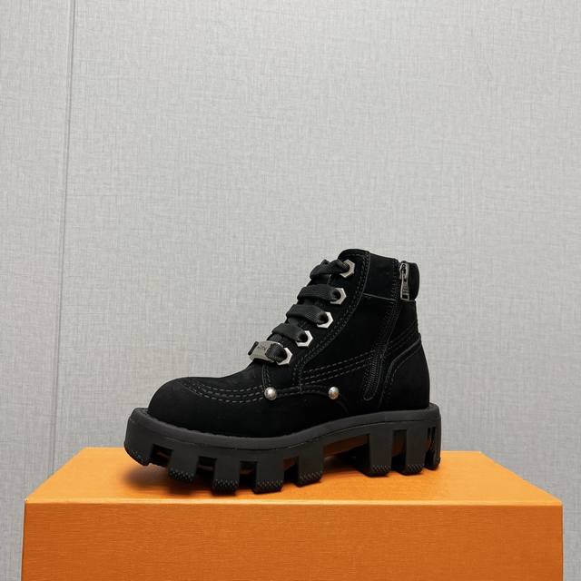 Couple's Boots (L*V) Autumn/Winter Newest Short Boots Series (L*V) Thick-soled Zippered Short Boots (L*V) Heavy-duty craftsmanship, imported directly from France, and meticulously crafted using private molds over several months to ensure all materials, finishes, and workmanship are identical to the original! Material: Original custom cowhide Lining: Original custom sheepskin Insole: Original custom sheepskin Outsole: Original molded non-slip outsole Sole thickness: 6cm Sizes: 35-44 (Women's 40, Men's 45, custom-made, no returns or exchanges) Packaging: Original full packaging Color: Updated simultaneously with the official website