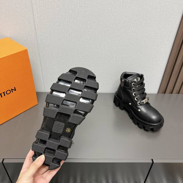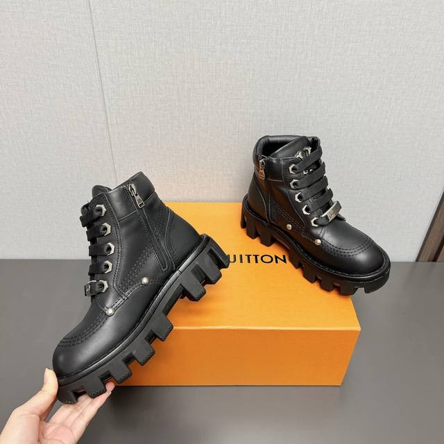 Couple's Boots (L*V) Autumn/Winter Newest Short Boots Series (L*V) Thick-soled Zippered Short Boots (L*V) Heavy-duty craftsmanship, imported directly from France, and meticulously crafted using private molds over several months to ensure all materials, finishes, and workmanship are identical to the original! Material: Original custom cowhide Lining: Original custom sheepskin Insole: Original custom sheepskin Outsole: Original molded non-slip outsole Sole thickness: 6cm Sizes: 35-44 (Women's 40, Men's 45, custom-made, no returns or exchanges) Packaging: Original full packaging Color: Updated simultaneously with the official website