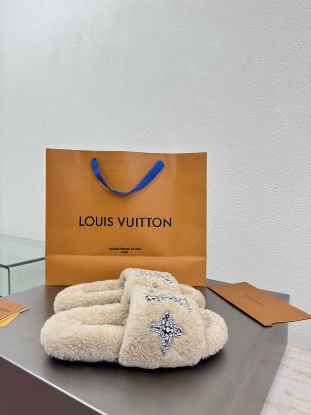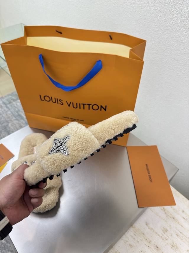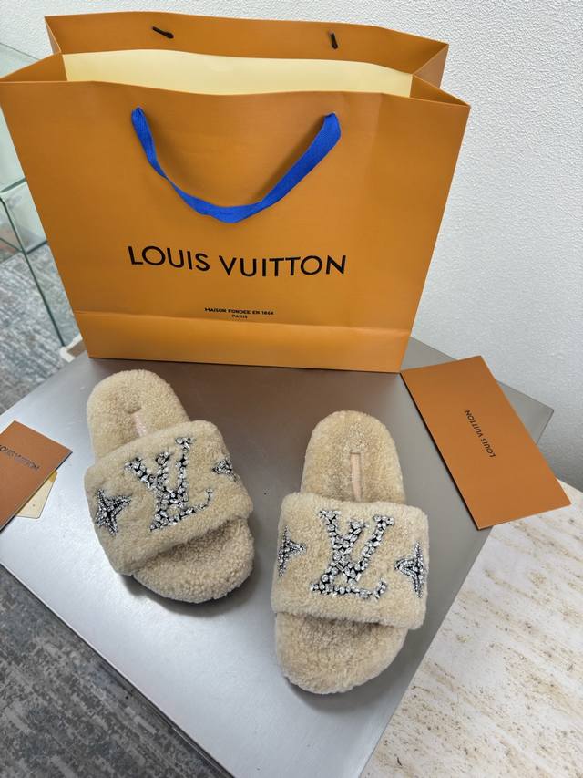 Diamond Hand-stitched Logo Imported Lambswool Slippers