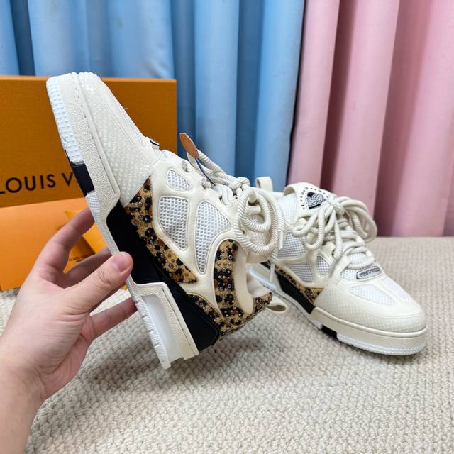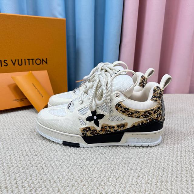 Diamond Shoes. New Louis Vuitton shoes, PK all versions on the market, couple style. Runway new basketball sneakers, high-quality replica. 1:1 original! Extremely comfortable and finely crafted. The upper is made of imported Italian calfskin, with the brand logo and signature on the side. It features an imported breathable mesh lining for superior comfort. Original factory-supplied two-tone TPU outsole. Goodyear welt construction and overlock stitching. Size: Women's 35-40, Men's 39-44 (Standard sizes 38, 45, 46, 47). Custom orders are non-refundable.
