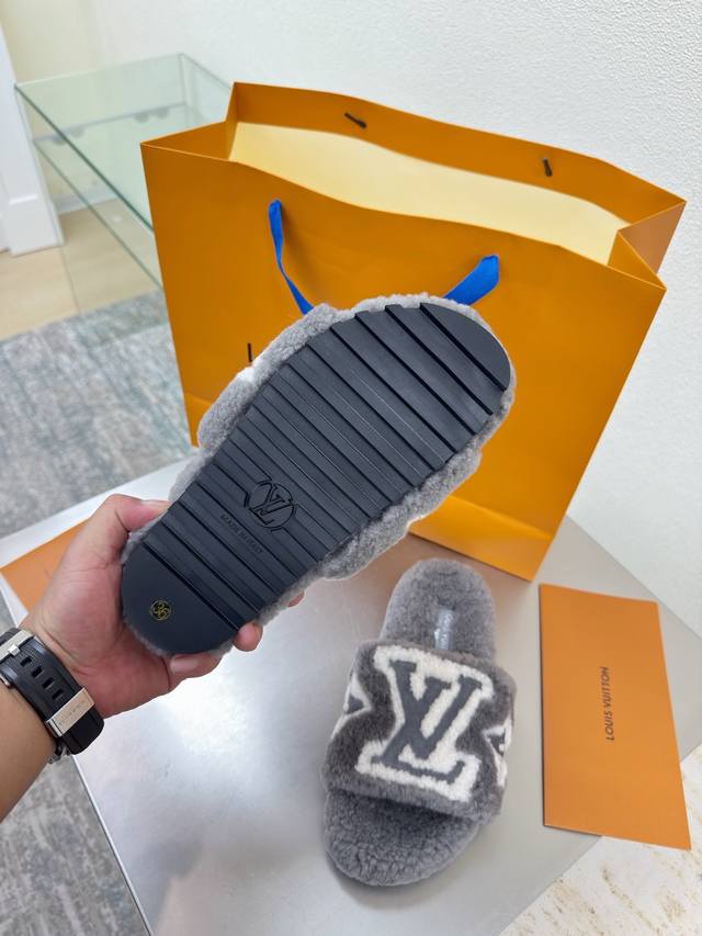 Grey Lambswool Double Shadow Color Block Logo Lv's creation