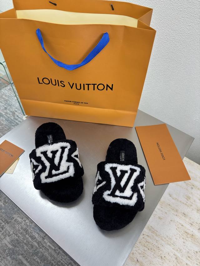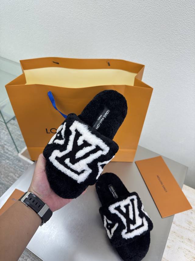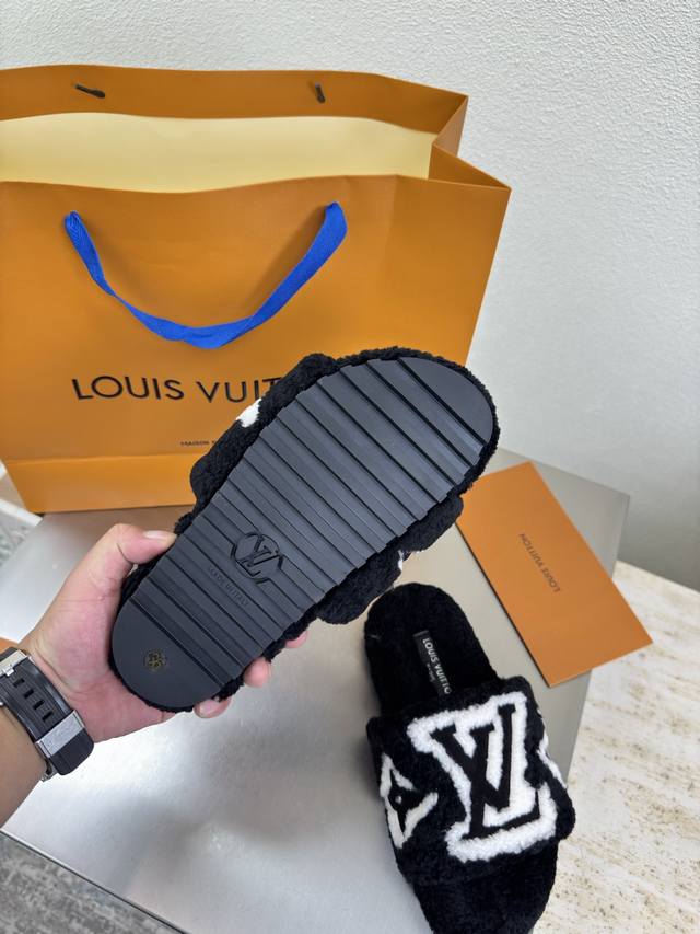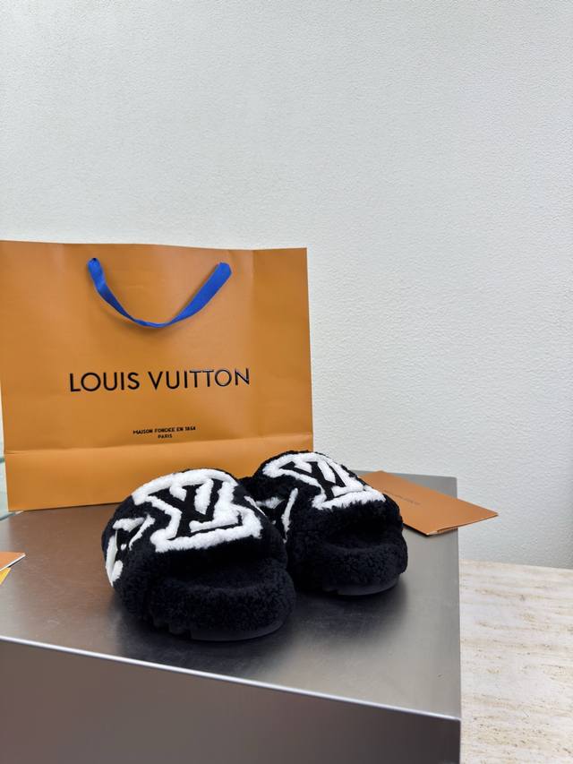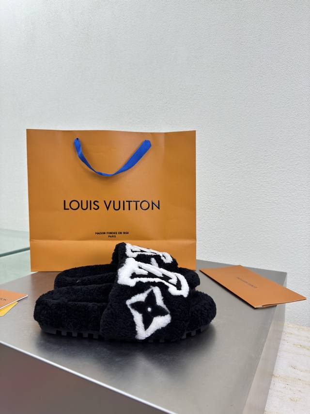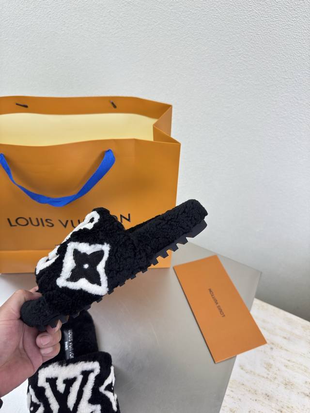Black Lambswool Double Shadow Color Block Logo Lv's creation