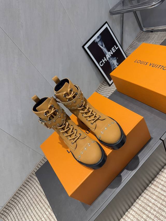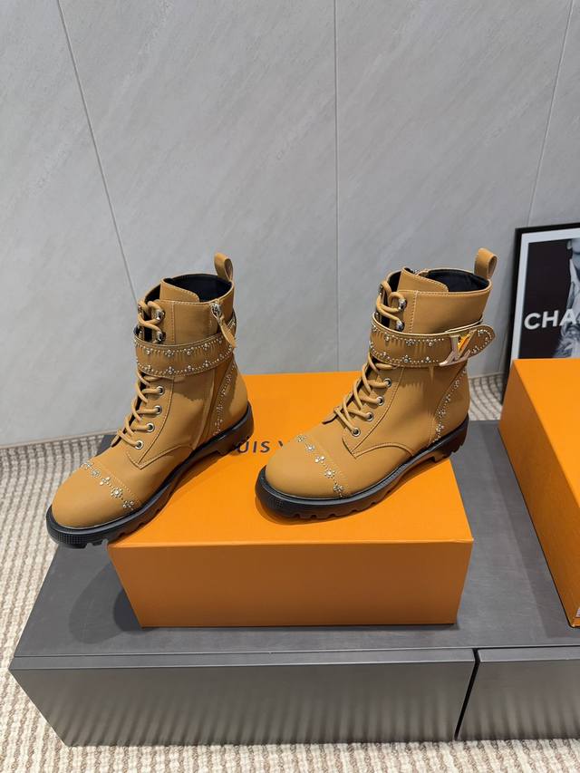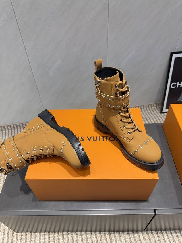Factory Direct: Exclusive Top-Tier Version DDD L*V 2025 VS Early Autumn Latest Hot-Selling Boots Series DDD Round Toe Riveted Ankle Boots DDD Heavy-duty craftsmanship, original version imported from France, and crafted entirely with private molds over several months to ensure all materials, finishes, and workmanship are identical to the original! DDD Outer Material: Original Custom Cowhide DDD Lining: Original Custom Sheepskin DDD Insole: Original Custom Sheepskin DDD Outsole: Original Molded Foamed Composite Sole DDD Height: 3.5cm DDD Sizes: 35-39, 40.41 Custom orders are non-refundable DDD Packaging: Original Full Packaging DDD Color: Updated synchronously with the official website DDD