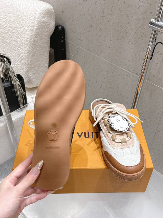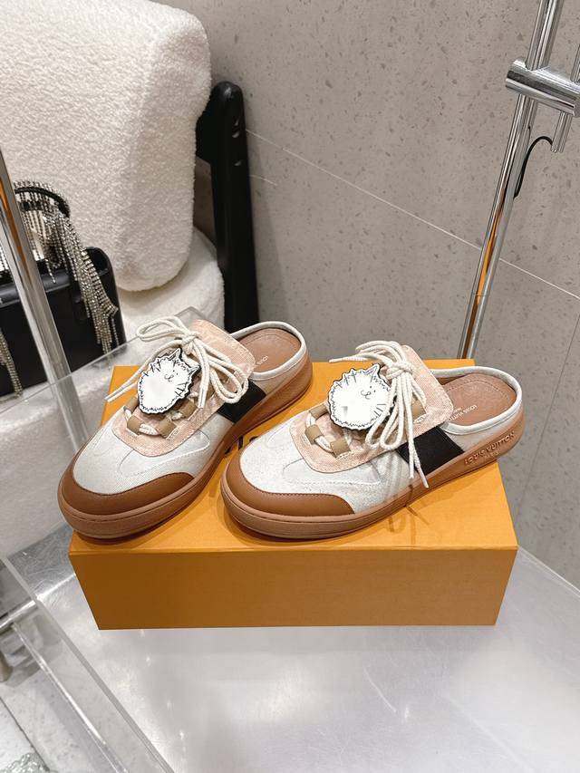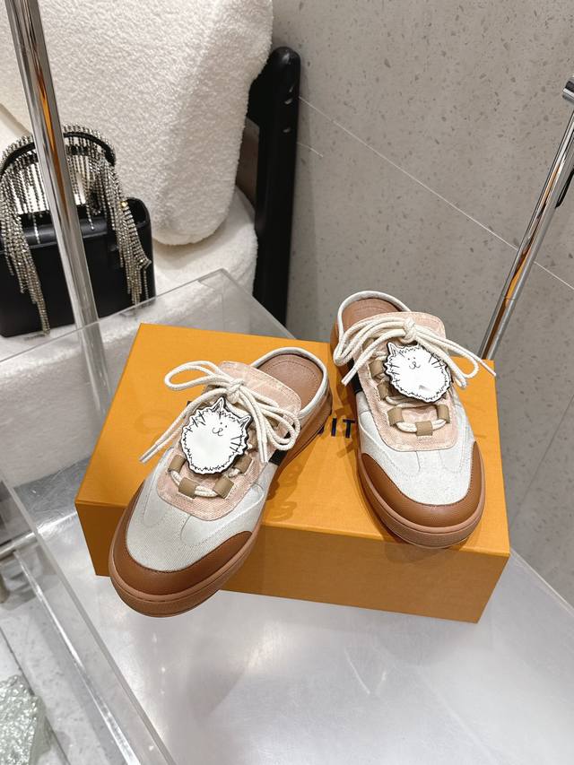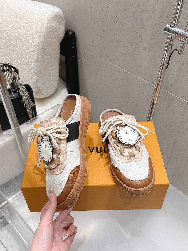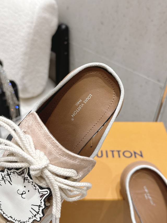 Factory direct Louis Vuitton Spring/Summer 2026 New Style Lace-up Cute Cat Mules DDD Upper: Imported cowhide patchwork upper Ddd Insole: Sheepskin Ddd Sole: Original mold custom rubber outsole Ddd Sizes: 35-39 40.41 Made to order, no returns or exchanges DDD