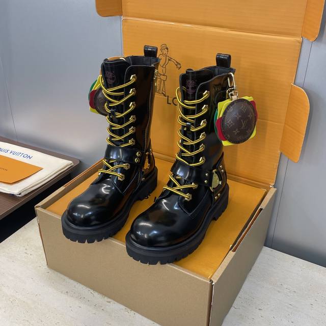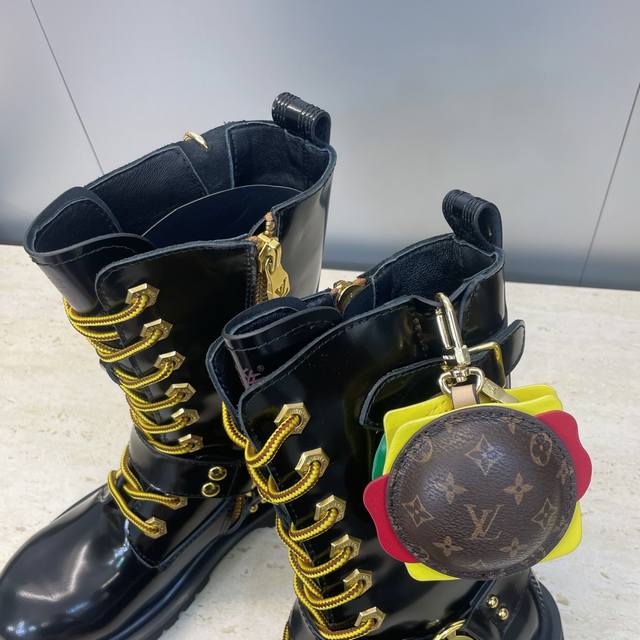 Factory direct price, no bag included. Louis Vuitton x Timberland collaboration 2025 Fall/Winter new style couple's nomadic style lace-up motorcycle ankle boots with Lv logo, metal buckle, hamburger decoration, thick sole, color blocking, slip-on riding boots. Material: Imported silk cowhide upper, split-edge beaded cowhide + water-dyed sheepskin lining + original molded outsole. Size: Women's sizes 35-41, 40, 41 (custom orders, no returns/exchanges); Men's sizes 39-44, 45 (custom orders, no returns/exchanges).