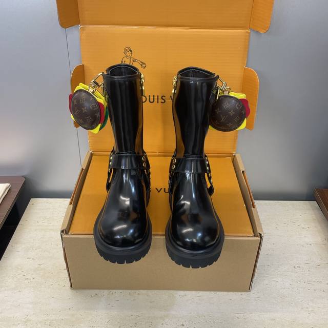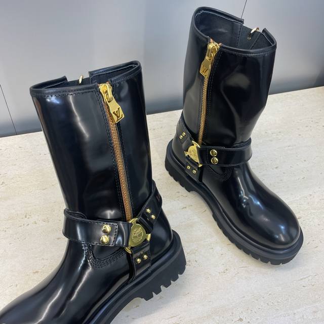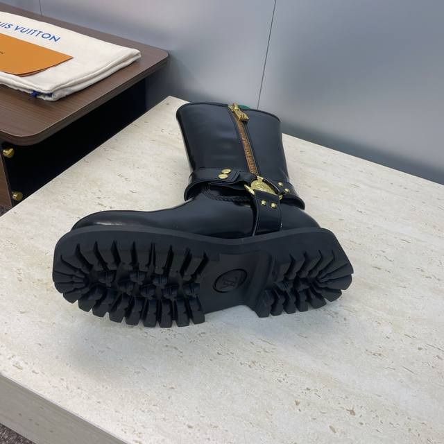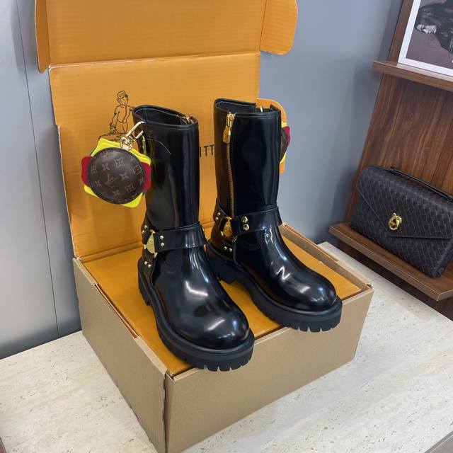 Factory direct price, no bag included. Louis Vuitton x Timberland collaboration 2025 Fall/Winter new style couple's nomadic style lace-up motorcycle ankle boots with Lv logo, hardware buckle, hamburger decoration, thick sole, color blocking, slip-on riding boots. Material: Imported silk cowhide upper, split beaded cowhide + water-dyed sheepskin lining + original molded outsole. Size: Women's sizes 35-41, 40, 41 (custom orders, no returns/exchanges); Men's sizes 39-44, 45 (custom orders, no returns/exchanges).