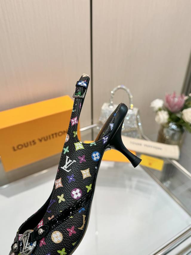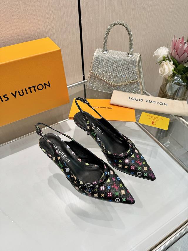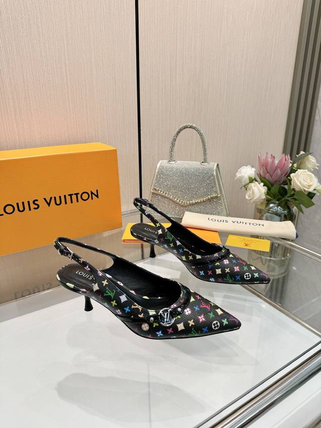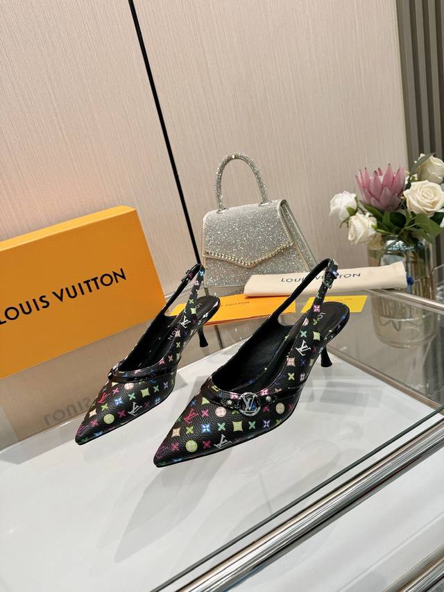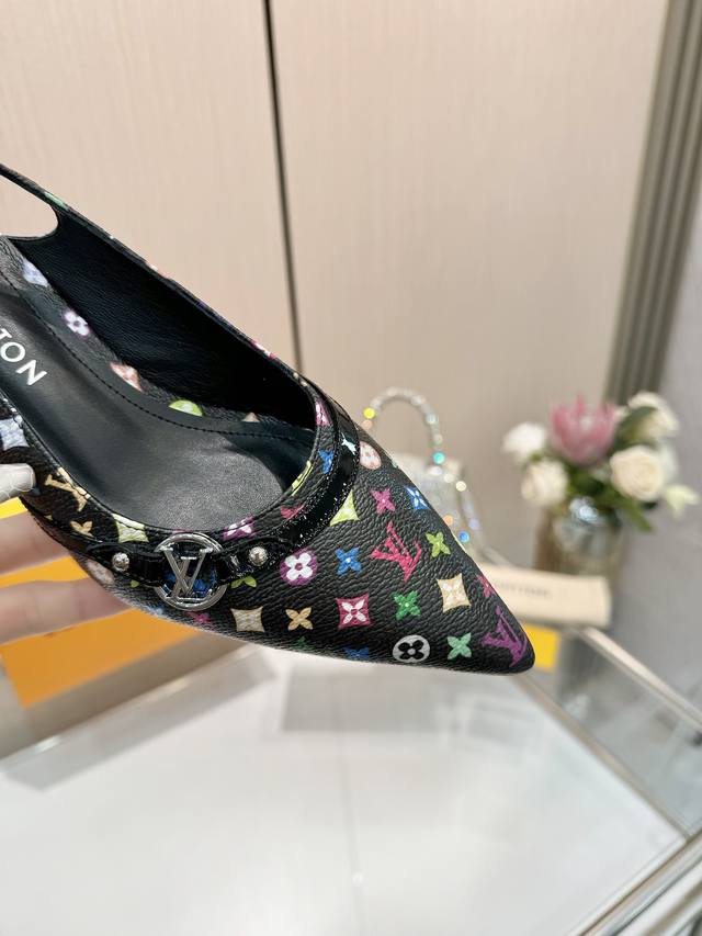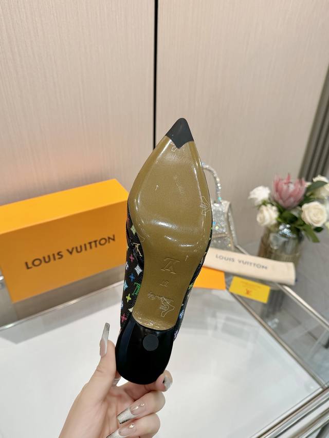 Factory direct wholesale: Louis Vuitton 2025 official website early spring collection! Perfect last, new pointed toe design, updated simultaneously with the official website. The pointed toe is paired with a hollowed-out leather strip and a small square buckle for adjustable tightness. The Lv hardware "Logo" adds a touch of detail, creating a visually stunning effect that perfectly embodies Lv's elegant temperament. Comfortable to wear and very feminine. New original molded last, perfect 1:1 shape, exquisite workmanship, imported high-end fabrics presenting a refined texture! Fabric: Imported lambskin, cow patent leather monogram denim; lining: high-quality soft lambskin; insole: imported goatskin; Italian genuine leather outsole; 5.5 painted heel. Sizes: 34-41 (34.40, 41). Custom orders are non-refundable and non-exchangeable.