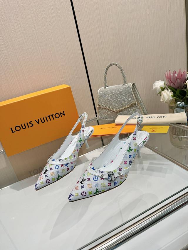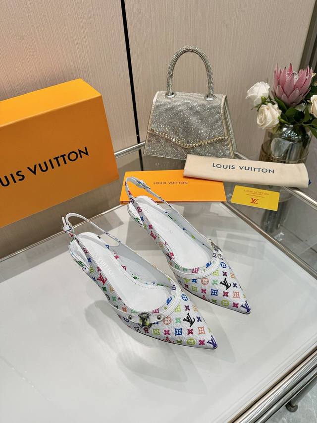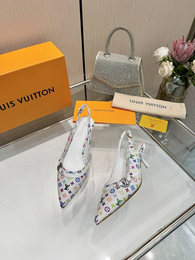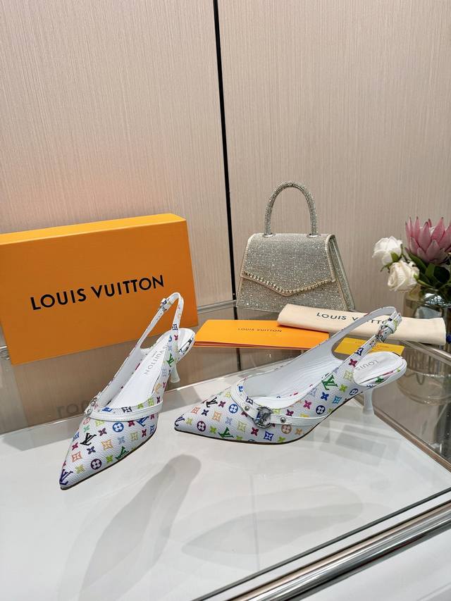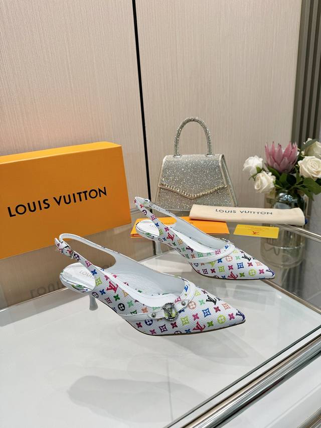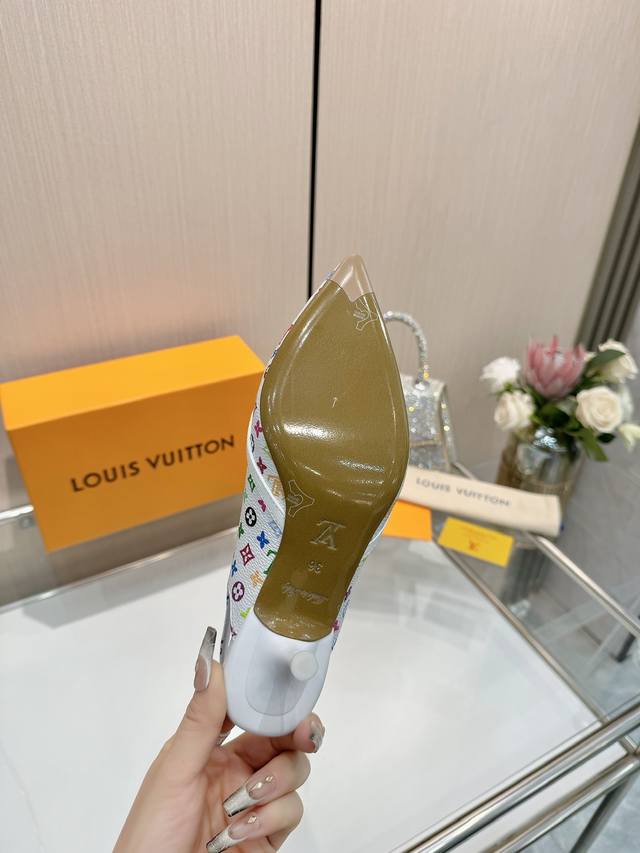 Factory direct wholesale: Louis Vuitton 2025 official website early spring collection! Perfect last, new pointed toe design, updated simultaneously with the official website. The pointed toe is paired with a hollowed-out leather strip and a small square buckle for adjustable tightness. The Lv hardware "Logo" adds a touch of detail, creating a visually stunning effect that perfectly embodies Lv's elegant temperament. Comfortable to wear and very feminine. New original molded last, perfect 1:1 shape, exquisite workmanship, imported high-end fabrics presenting a refined texture! Fabric: Imported lambskin, cow patent leather monogram denim; High-quality soft lambskin lining; Insole: Imported goatskin; Italian genuine leather outsole; 5.5 painted heel. Sizes: 34-41 (34.40, 41). Custom orders are non-refundable and non-exchangeable.