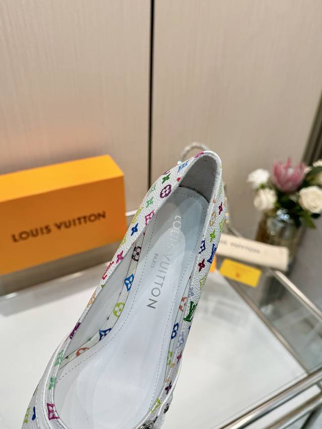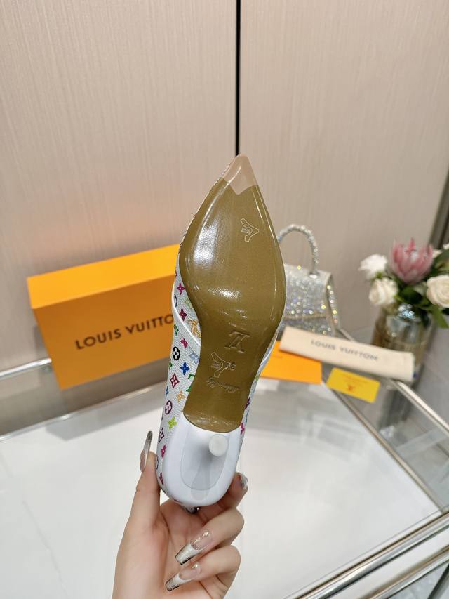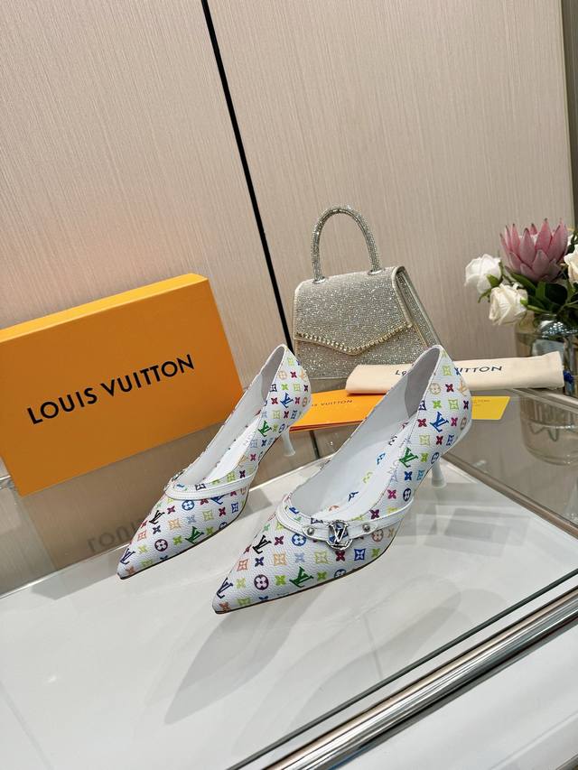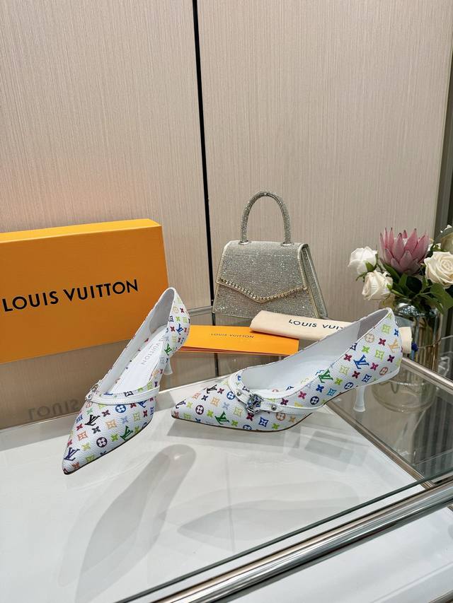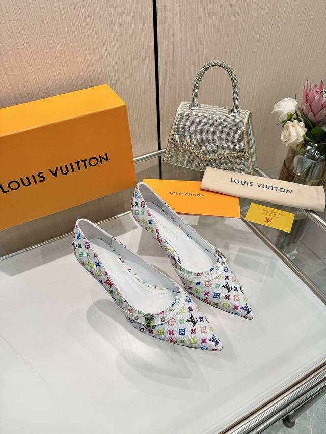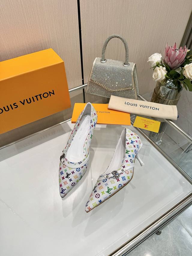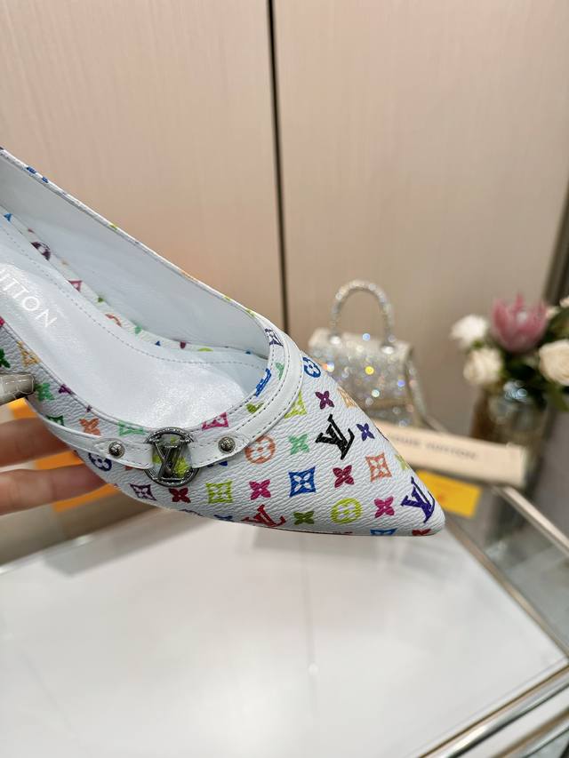 Factory direct wholesale: Louis Vuitton 2025 official website early spring collection! Perfect last, new pointed toe design, updated simultaneously with the official website. The pointed toe is paired with a hollowed-out leather strip and a small square buckle for adjustable tightness. The Lv hardware "Logo" adds a touch of detail, creating a visually stunning effect that perfectly embodies Lv's elegant temperament. Comfortable to wear and very feminine. New original molded last, perfect 1:1 shape, exquisite workmanship, imported high-end fabrics presenting a refined texture! Fabric: Imported lambskin, cow patent leather monogram denim; High-quality soft lambskin lining; Insole: Imported goatskin; Italian genuine leather outsole; 5.5 painted heel. Sizes: 34-41 (34.40, 41). Custom orders are non-refundable and non-exchangeable.