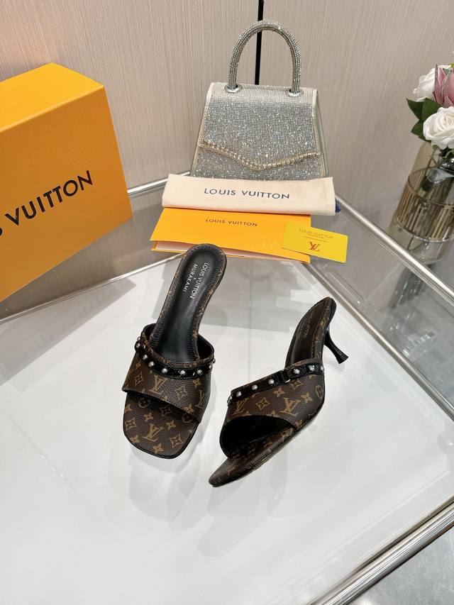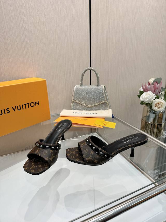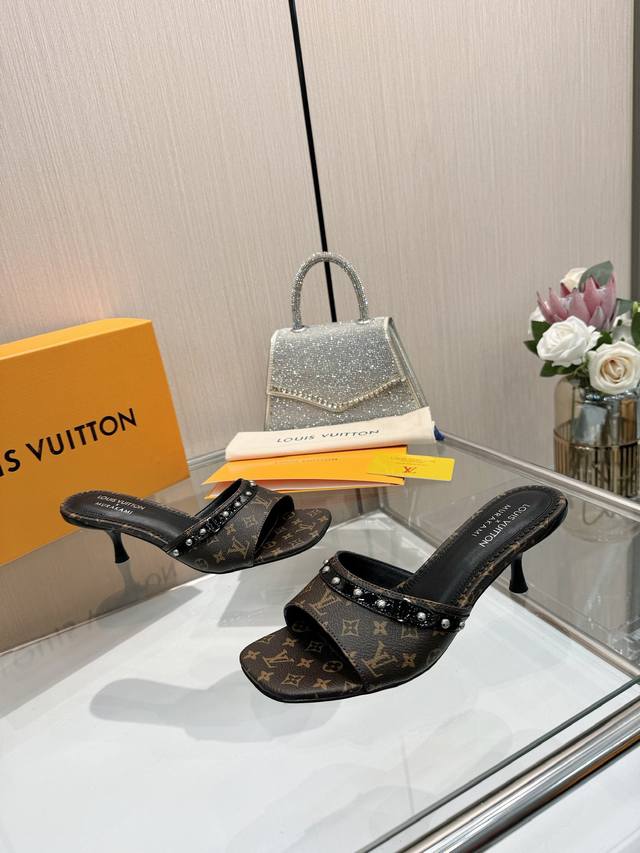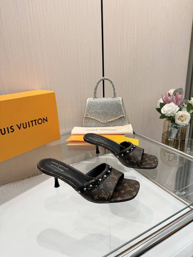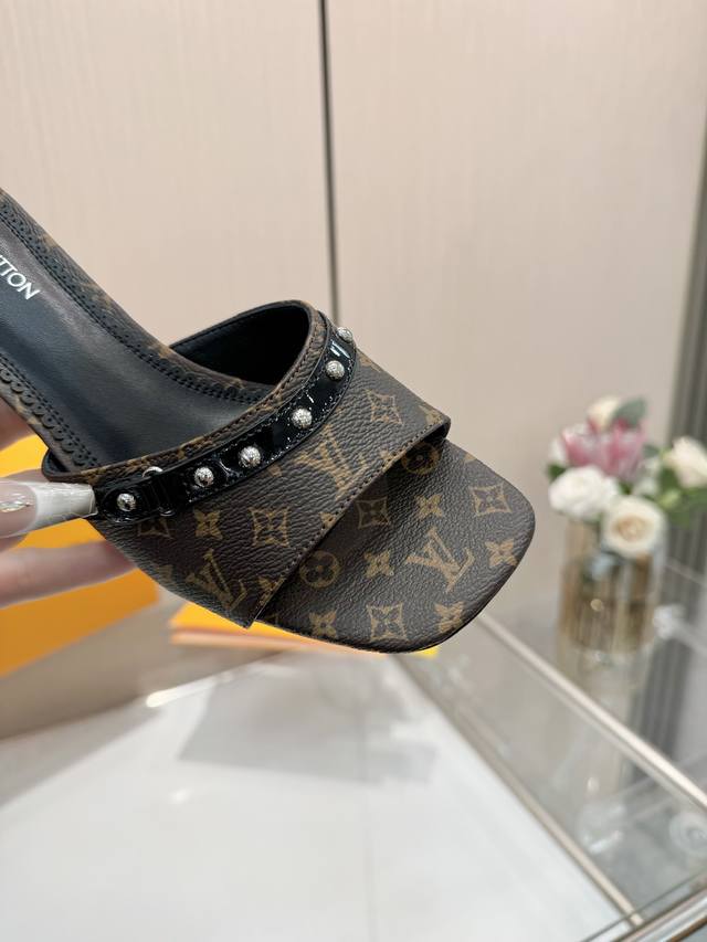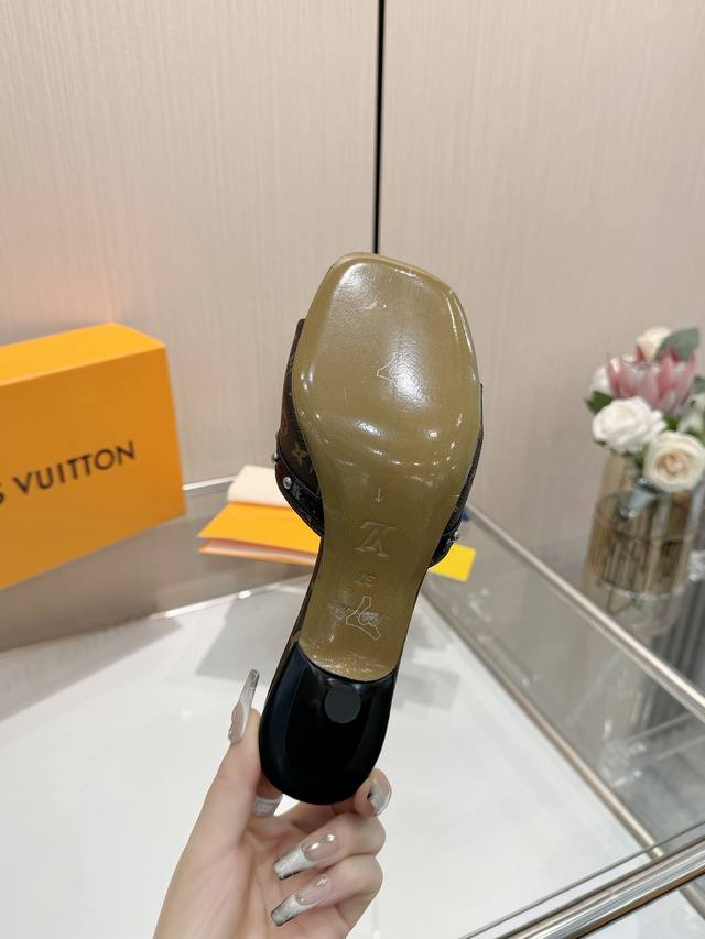 Factory direct wholesale: Louis Vuitton 2025 official website early spring collection! Perfect last, new mid-heel slippers, updated simultaneously with the official website. The Lv hardware "Logo" embellishment adds a touch of detail, creating a visual feast that cannot conceal Lv's elegant temperament. Comfortable to wear, very feminine. New original molded last, perfect 1:1 shape, exquisite workmanship, imported high-end fabrics presenting a refined texture! Fabric: Imported lambskin, cow patent leather monogram denim; Insole: Imported goatskin; Italian genuine leather outsole; 5.5 painted heel. Sizes: 34-41 (34.40, 41). Custom orders are non-refundable and non-exchangeable.