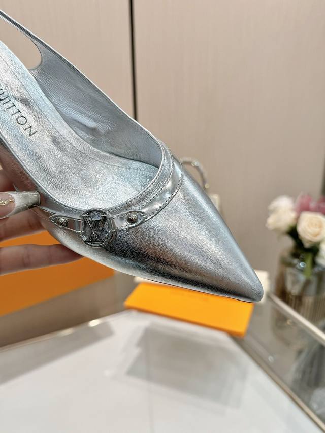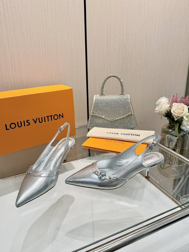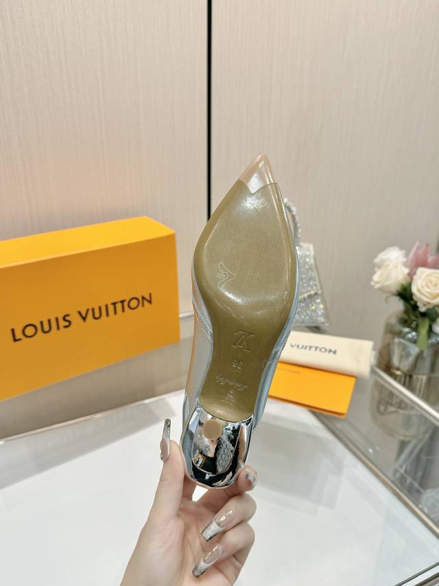 Factory direct wholesale: Louis Vuitton 2025 official website early spring collection! Perfect last, new pointed toe design, updated simultaneously with the official website. The pointed toe is paired with a hollowed-out leather strip and a small square buckle for adjustable tightness. The Lv hardware "Logo" adds a touch of detail, creating a visual feast that cannot conceal Lv's elegant temperament. Just right, comfortable to wear, and very feminine. New original molded last, perfect 1:1 shape, exquisite workmanship, imported high-end fabric presents a refined texture! Fabric: Imported lambskin, cow patent leather monogram denim; High-quality soft lambskin lining; Insole: Imported goatskin; Italian genuine leather outsole; 5.5 painted heel; Sizes: 34-41 (34.40, 41, custom orders are non-refundable and non-exchangeable).