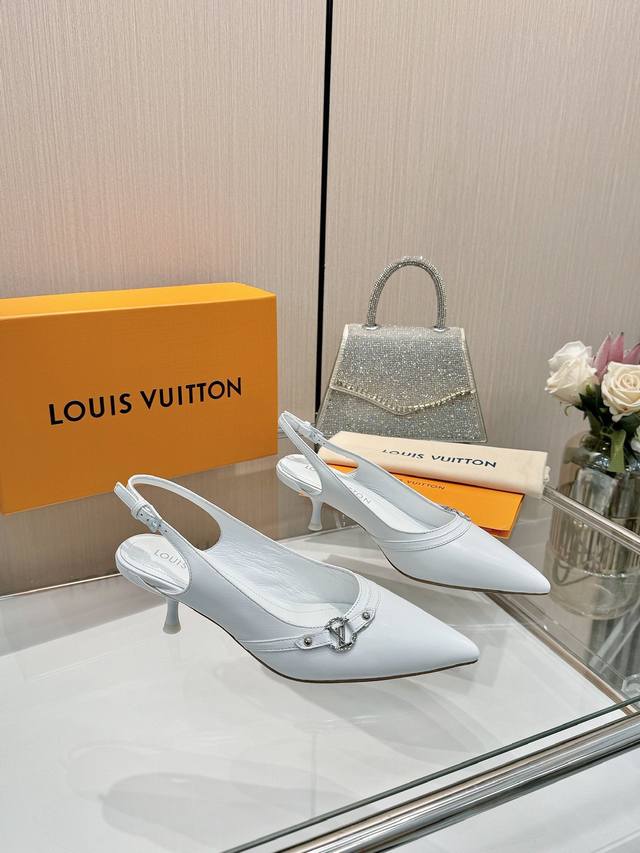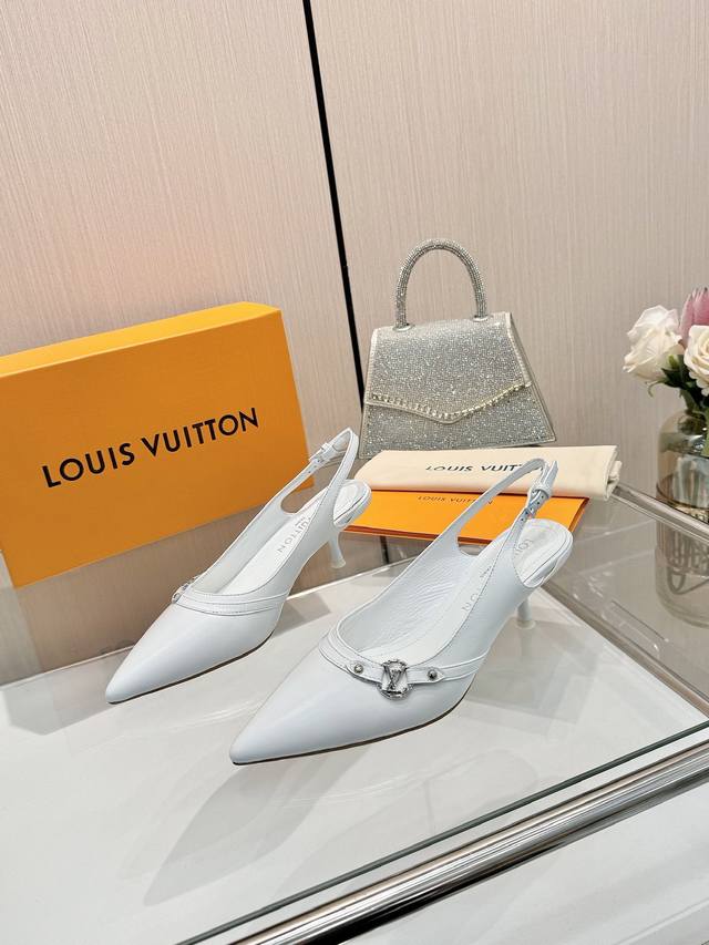 Factory direct wholesale: Louis Vuitton 2025 official website early spring collection! Perfect last, new pointed toe design, updated simultaneously with the official website. The pointed toe is paired with a hollowed-out leather strip and a small square buckle for adjustable tightness. The Lv hardware "Logo" adds a touch of detail, creating a visually stunning effect that perfectly embodies Lv's elegant temperament. Comfortable to wear and very feminine. New original molded last, perfect 1:1 shape, exquisite workmanship, imported high-end fabrics presenting a refined texture! Fabric: Imported lambskin, cow patent leather monogram denim; High-quality soft lambskin lining; Insole: Imported goatskin; Italian genuine leather outsole; 5.5 painted heel; Sizes: 34-41 (34.40, 41, custom orders are non-refundable and non-exchangeable).