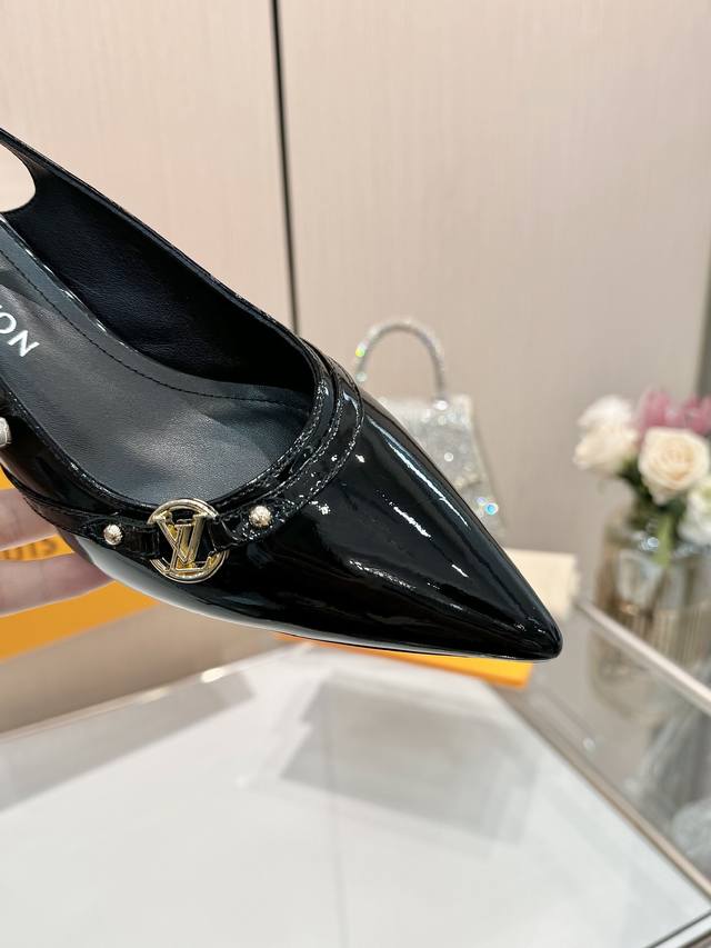Factory direct wholesale: Louis Vuitton 2025 official website early spring collection! Perfect last, new pointed toe design, updated simultaneously with the official website. The pointed toe is paired with a hollowed-out leather strip and a small square buckle for adjustable tightness. The Lv hardware "Logo" adds a touch of detail, creating a visual feast that cannot conceal Lv's elegant temperament. Just right, comfortable to wear, and very feminine. New original molded last, perfect 1:1 shape, exquisite workmanship, imported high-end fabric presents a refined texture! Fabric: Imported lambskin, cow patent leather monogram denim; High-quality soft lambskin lining; Insole: Imported goatskin; Italian genuine leather outsole; 5.5 painted heel; Sizes: 34-41 (34.40, 41), custom orders are non-refundable and non-exchangeable.