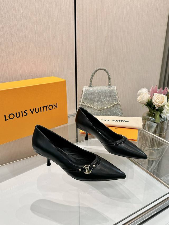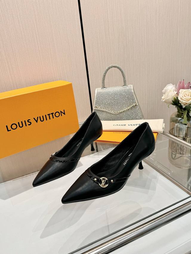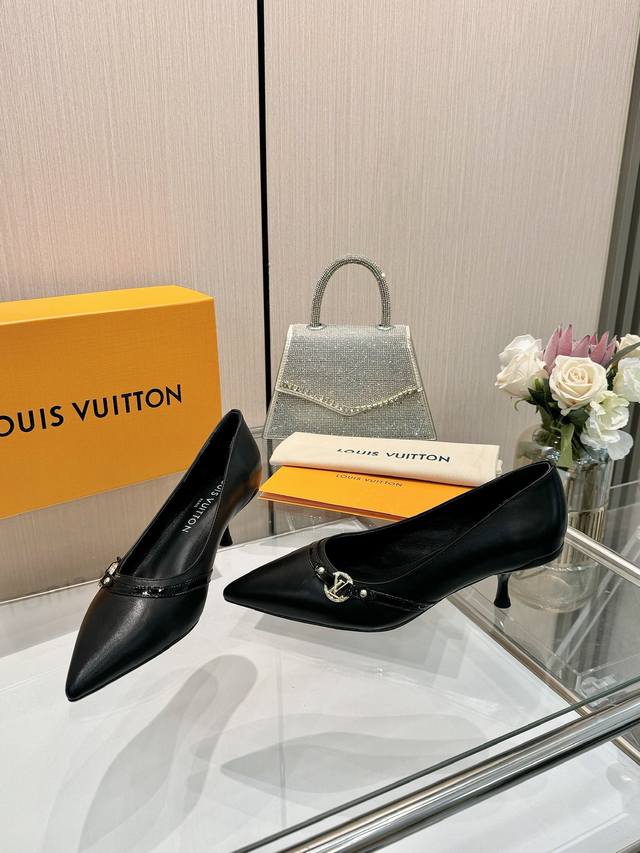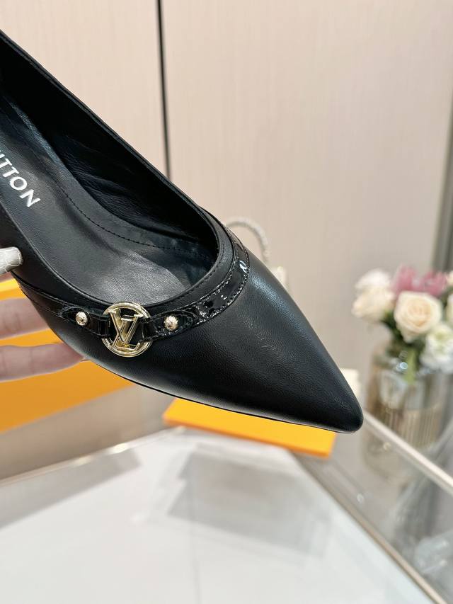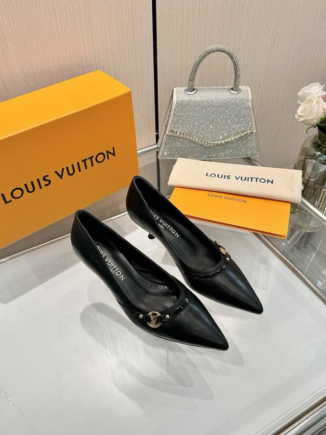 Factory direct wholesale: Louis Vuitton 2025 official website early spring collection! Perfect last, new pointed toe design, updated simultaneously with the official website. The pointed toe is paired with a hollowed-out leather strip and a small square buckle for adjustable tightness. The Lv hardware "Logo" adds a touch of detail, creating a visually stunning effect that perfectly embodies Lv's elegant temperament. Comfortable to wear and very feminine. New original molded last, perfect 1:1 shape, exquisite workmanship, imported high-end fabrics presenting a refined texture! Fabric: Imported lambskin, cow patent leather monogram denim; High-quality soft lambskin lining; Insole: Imported goatskin; Italian genuine leather outsole; 5.5 painted heel. Sizes: 34-41 (34.40, 41). Custom orders are non-refundable and non-exchangeable.