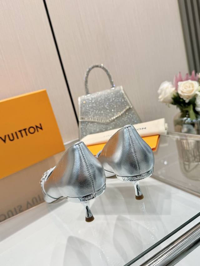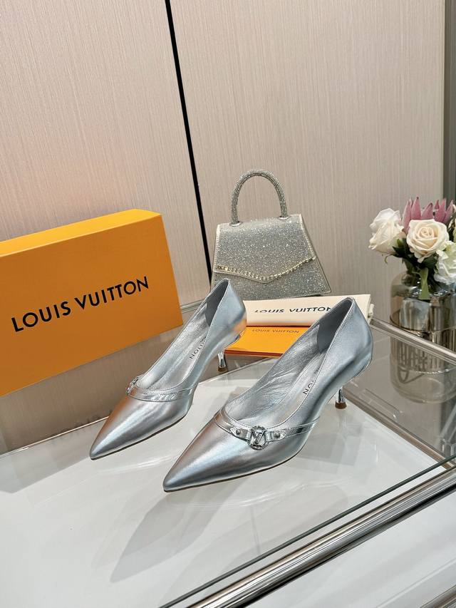 Factory direct wholesale: Louis Vuitton 2025 official website early spring collection! Perfect last, new pointed toe design, updated simultaneously with the official website. The pointed toe is paired with a hollowed-out leather strip and a small square buckle for adjustable tightness. The Lv hardware "Logo" adds a touch of detail, creating a visual feast that cannot conceal Lv's elegant temperament. Just right, comfortable to wear, and very feminine. New original molded last, perfect 1:1 shape, exquisite workmanship, imported high-end fabric presents a refined texture! Fabric: Imported lambskin, cow patent leather monogram denim; lining: high-quality soft lambskin; insole: imported goatskin; Italian genuine leather outsole; 5.5 painted heel. Sizes: 34-41 (34.40, 41). Custom orders are non-refundable and non-exchangeable.
