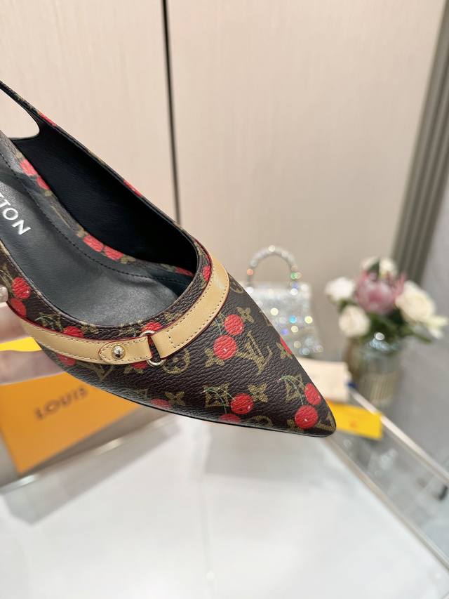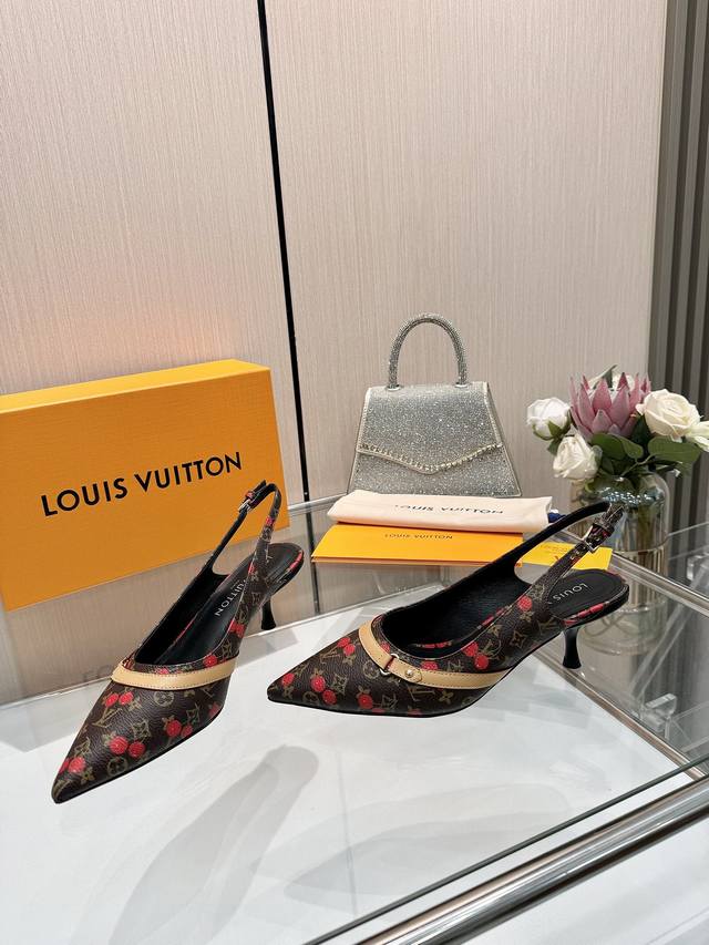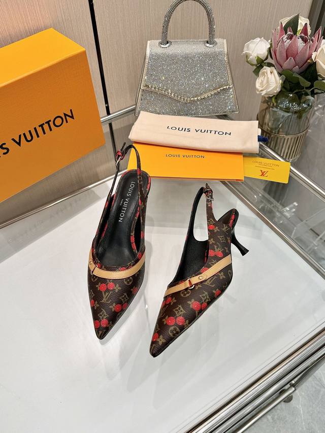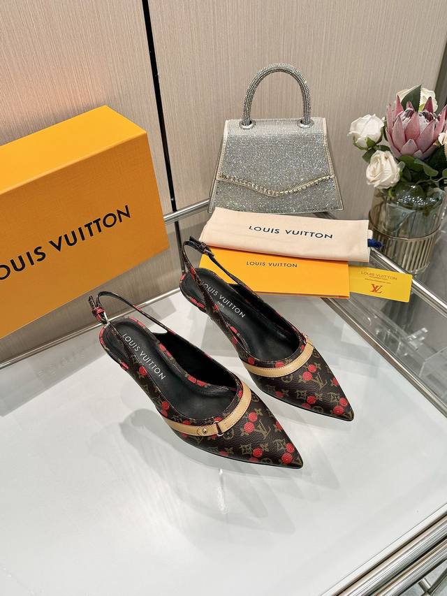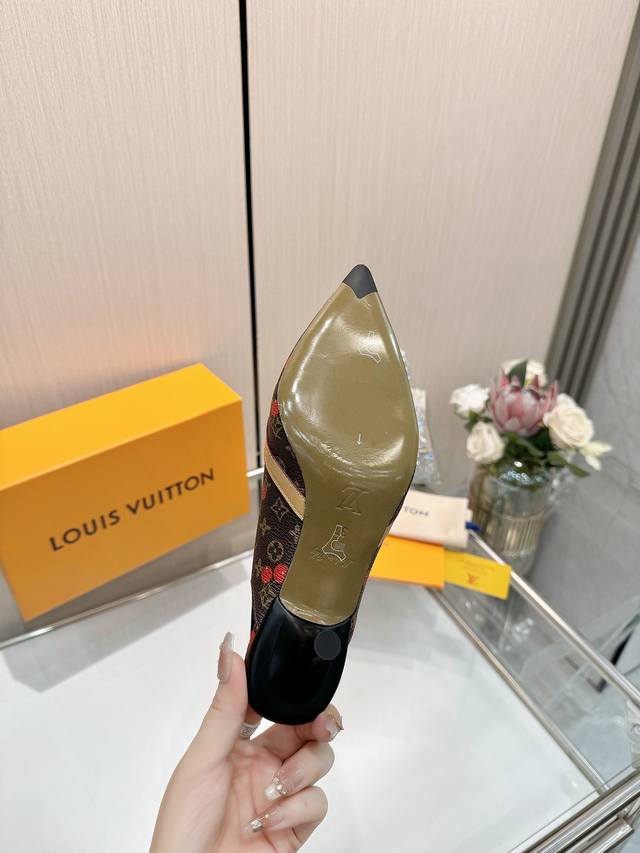 Factory direct wholesale: Louis Vuitton 2025 official website early spring collection! Perfect last, new pointed toe design, updated simultaneously with the official website. The pointed toe is paired with a hollowed-out leather strip and a small square buckle for adjustable tightness. The Lv hardware "Logo" adds a touch of detail, creating a visual feast that cannot conceal Lv's elegant temperament. Just right, comfortable to wear, and very feminine. New original molded last, perfect 1:1 shape, exquisite workmanship, imported high-end fabric presents a refined texture! Fabric: Lv exclusive monogram with embossed process; High-quality soft sheepskin lining; Insole: Imported goatskin; Italian genuine leather outsole; 5.5 painted heel; Sizes: 34-41 (34.40, 41, custom orders are non-refundable and non-exchangeable).