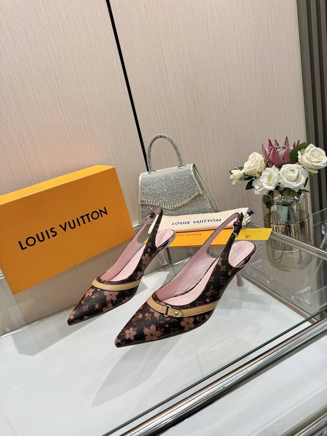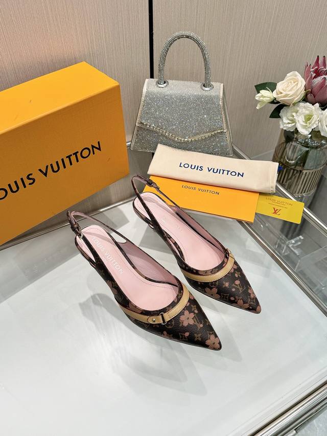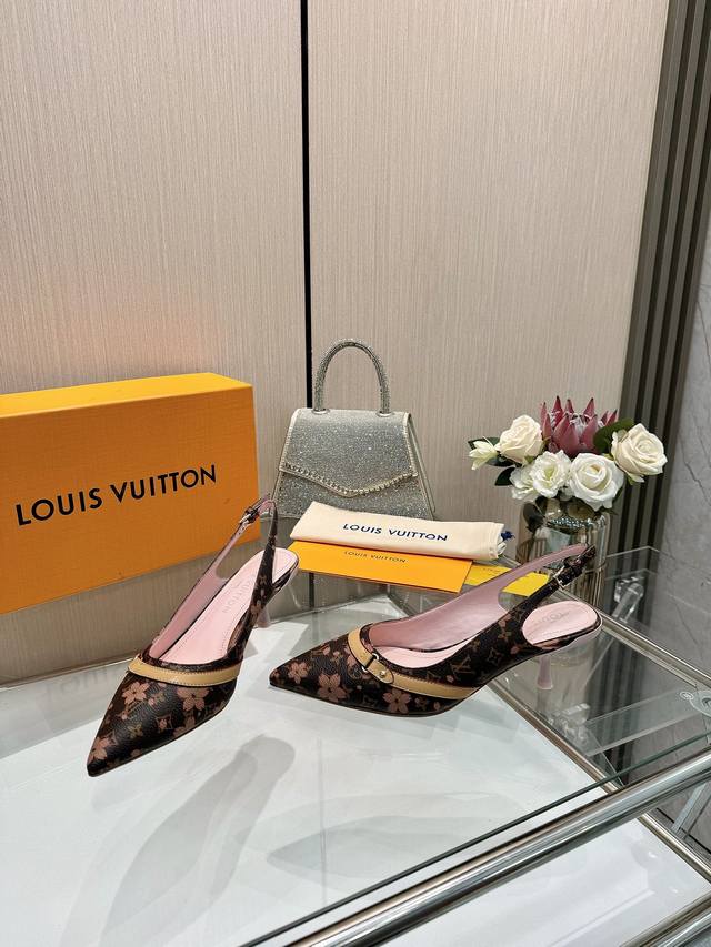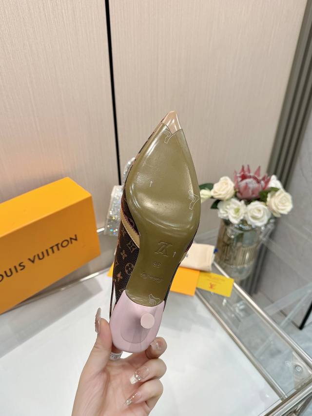 Factory direct wholesale: Louis Vuitton 2025 official website early spring collection! Perfect last, new pointed toe design, updated simultaneously with the official website. The pointed toe is paired with a hollowed-out leather strip and a small square buckle for adjustable tightness. The Lv hardware "Logo" adds a touch of detail, creating a visual feast that cannot conceal Lv's elegant temperament. Just right, comfortable to wear, and very feminine. New original molded last, perfect 1:1 shape, exquisite workmanship, imported high-end fabric presents a refined texture! Fabric: Imported lambskin, cow patent leather monogram denim; lining: high-quality soft lambskin; insole: imported goatskin; Italian genuine leather outsole; 5.5 painted heel. Sizes: 34-41 (34.40, 41). Custom orders are non-refundable and non-exchangeable.