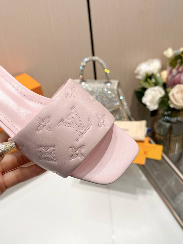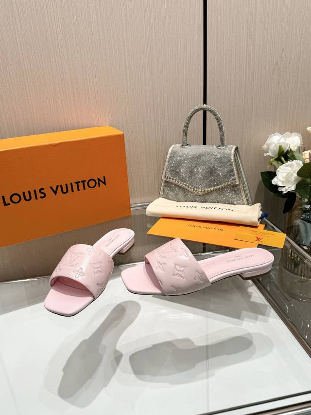 Factory direct wholesale: Louis Vuitton official website series slippers, top-quality, perfect last, latest embossed and embroidered texture, enhancing elegance, comfortable and stylish, versatile, new original molded last, perfect 1:1 shape, exquisite workmanship, imported high-end fabric presents a refined texture! Material: Imported lambskin, high-quality soft lambskin lining, insole: imported goatskin, Italian genuine leather outsole, 1.5mm leather heel. Sizes: 34-41. Sizes 34 and 41 are custom-made, non-refundable and non-exchangeable.