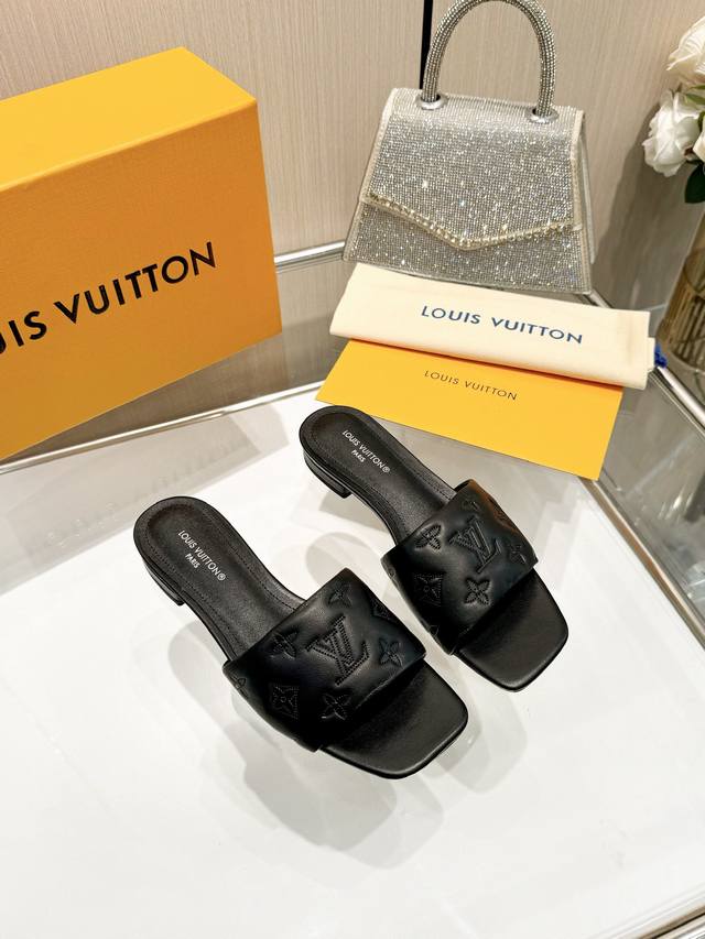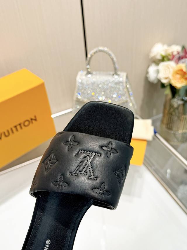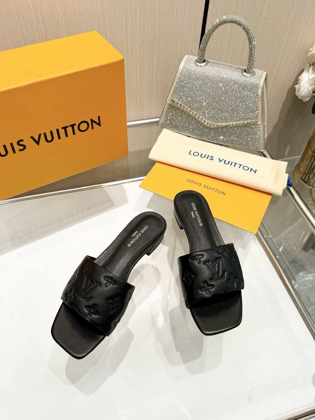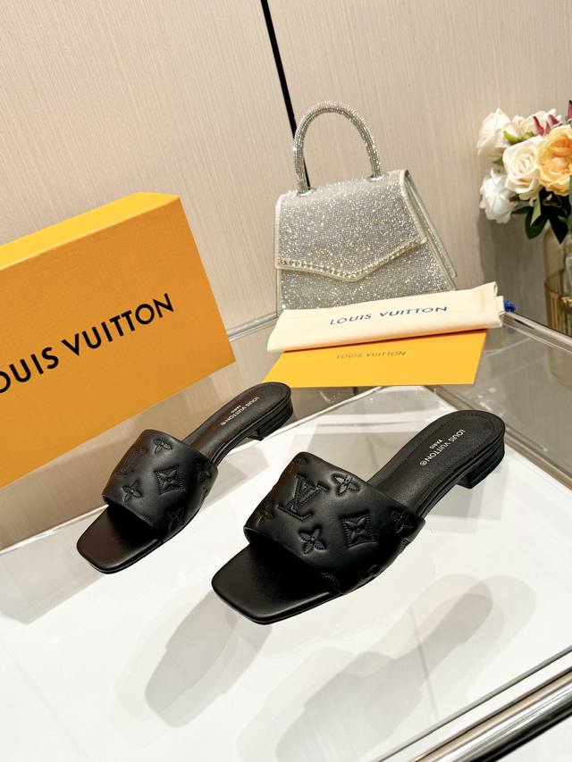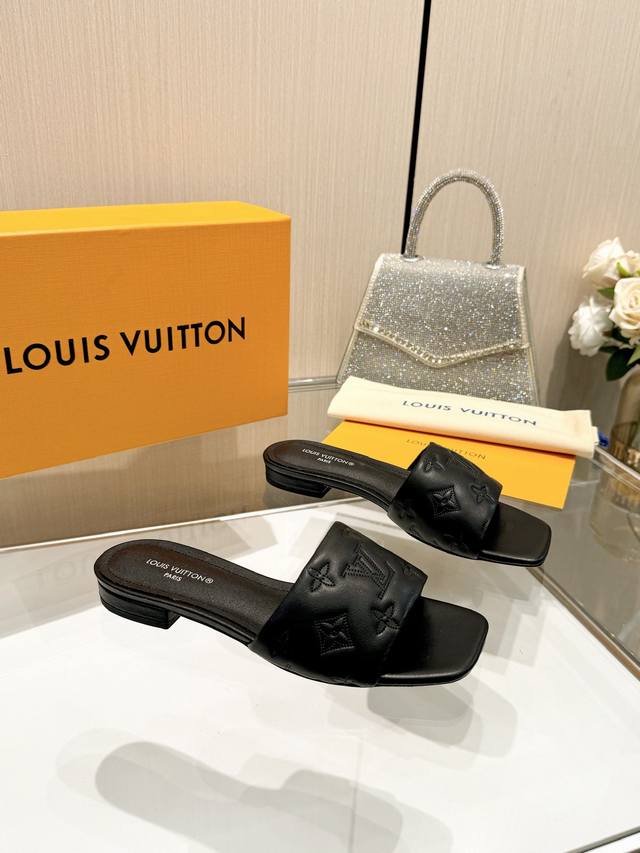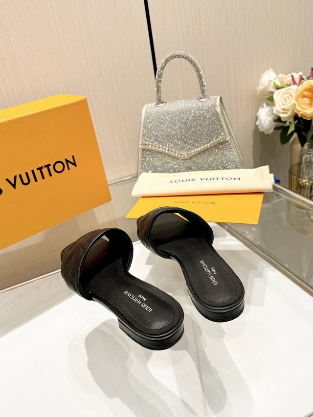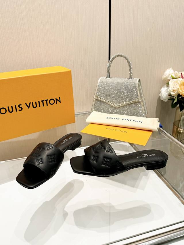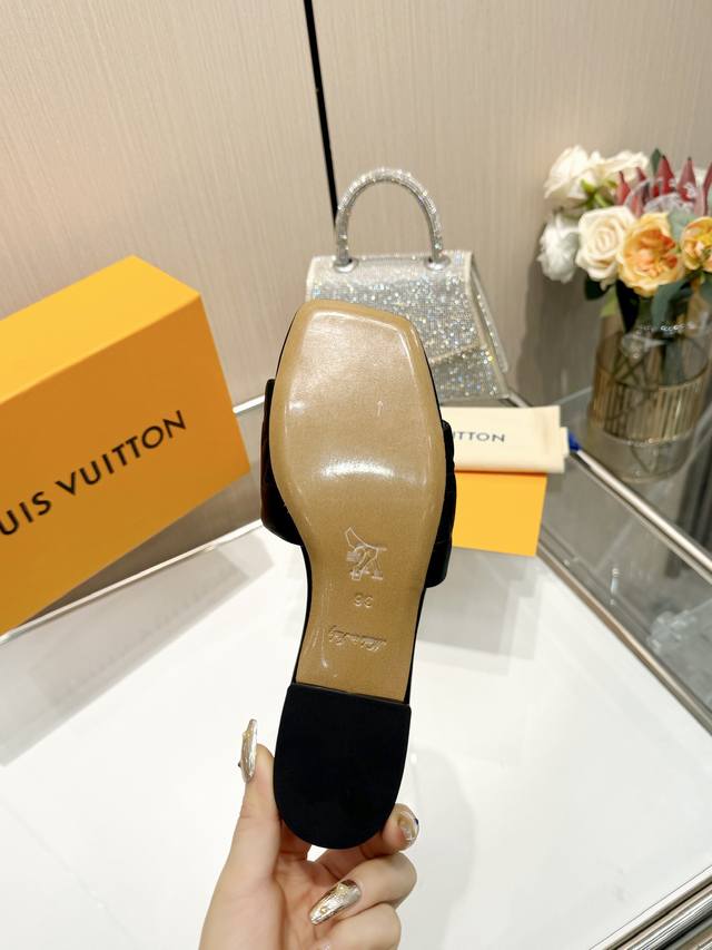 Factory direct wholesale: Louis Vuitton official website series slippers, top-quality, perfect last, latest embossed and embroidered texture, enhancing elegance, comfortable and stylish, versatile, new original molded last, perfect 1:1 shape, exquisite workmanship, imported high-end fabric presents a refined texture! Material: Imported lambskin, high-quality soft lambskin lining, insole: imported goatskin, Italian genuine leather outsole, 1.5mm upper, leather heel. Sizes: 34-41. Sizes 34 and 41 are custom-made, non-refundable and non-exchangeable.