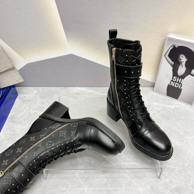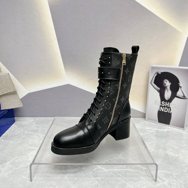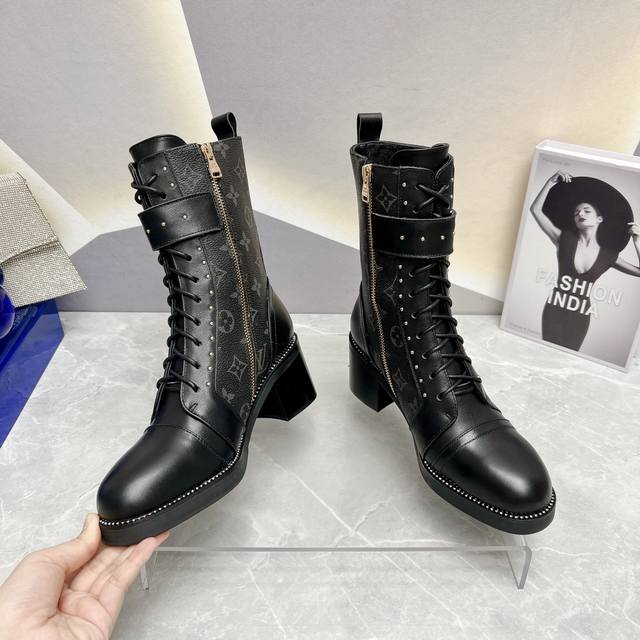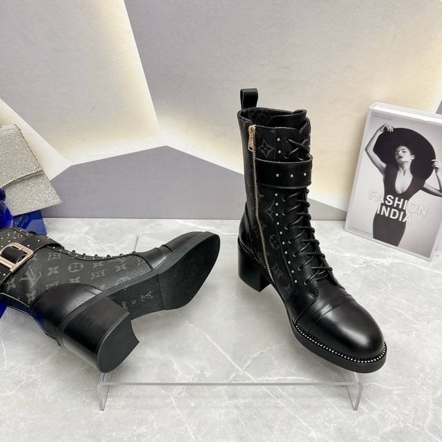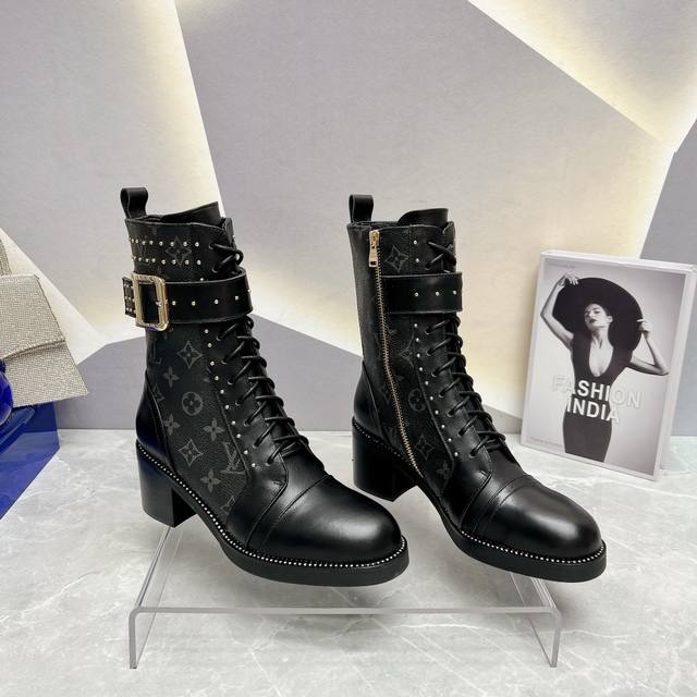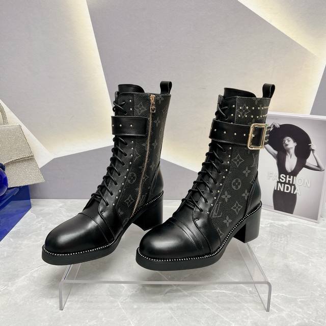 Factory: Exclusive Top-Tier Version DDD Lv2025Vs Autumn/Winter New Fashion Boots Series DDD Round Toe Lace-up Low-Heeled Ankle Boots DDD Silhouette Ankle Boots are reinterpreted this season with ultra-soft calfskin DDD The strap tied at the neckline gives it a very feminine touch, and the iconic Monogram floral heel is a feature of this series DDD It is also covered with the brand's signature DDD Material DDD Outsole: Imported cowhide DDD Lining: Imported sheepskin DDD Insole: Imported sheepskin DDD Outsole: Imported Italian genuine leather DDD Heel Height: 5Cm DDD Packaging: Original full packaging DDD Sizes: 35-39 40.41 Custom orders are non-refundable and non-exchangeable DDD Colors: Available in 3 colors simultaneously with the official website DDD