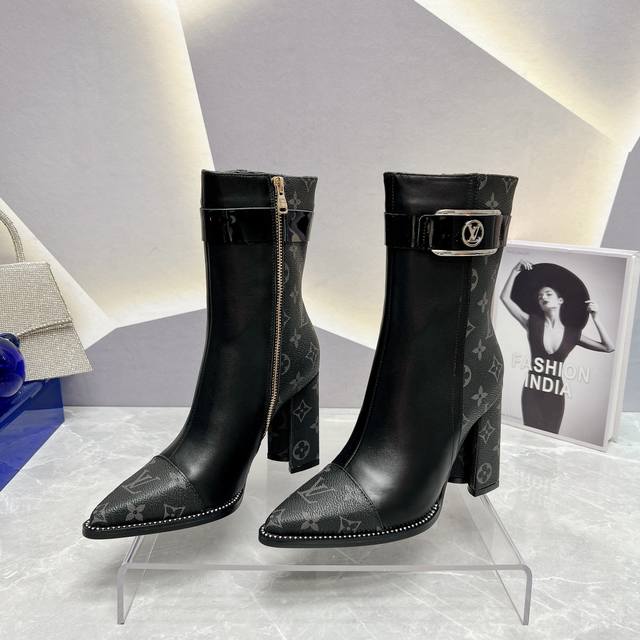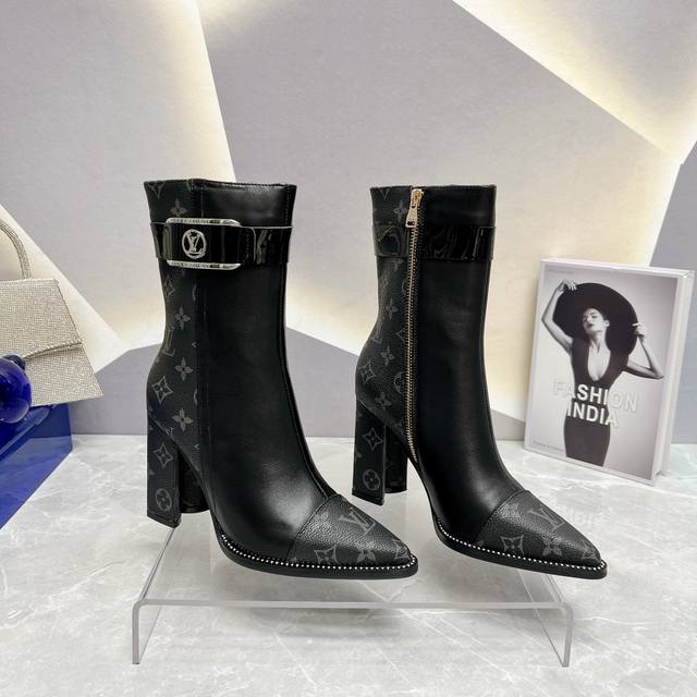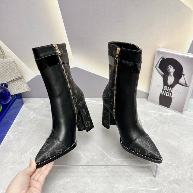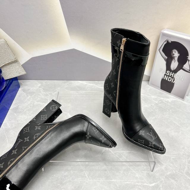 Factory: Exclusive Top-Tier Version DDD Lv2025Vs Autumn/Winter New Fashion Boots Series DDD Pointed Toe Zipper High-Heeled Ankle Boots DDD Silhouette Ankle Boots are reinterpreted this season with ultra-soft calfskin DDD The strap tied at the neckline gives it a very feminine touch, and the iconic Monogram floral heel is a feature of this series DDD It is also covered with the brand's iconic DDD Material DDD Outsole: Imported cowhide DDD Lining: Imported sheepskin DDD Insole: Imported sheepskin DDD Outsole: Imported Italian genuine leather DDD Heel Height: 10Cm DDD Packaging: Original full packaging DDD Sizes: 35-39 40.41 Custom orders are non-refundable and non-exchangeable DDD Colors: Available in 3 colors simultaneously with the official website DDD
