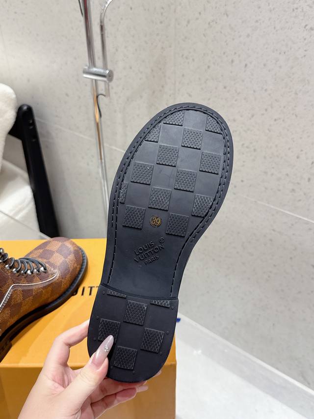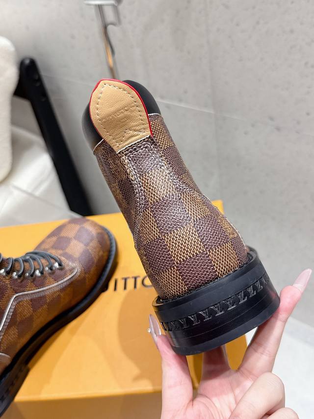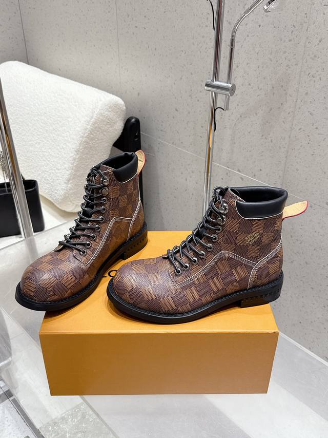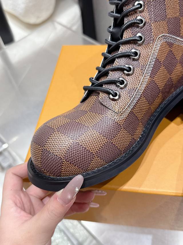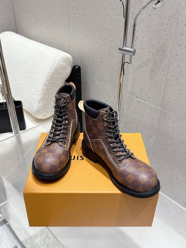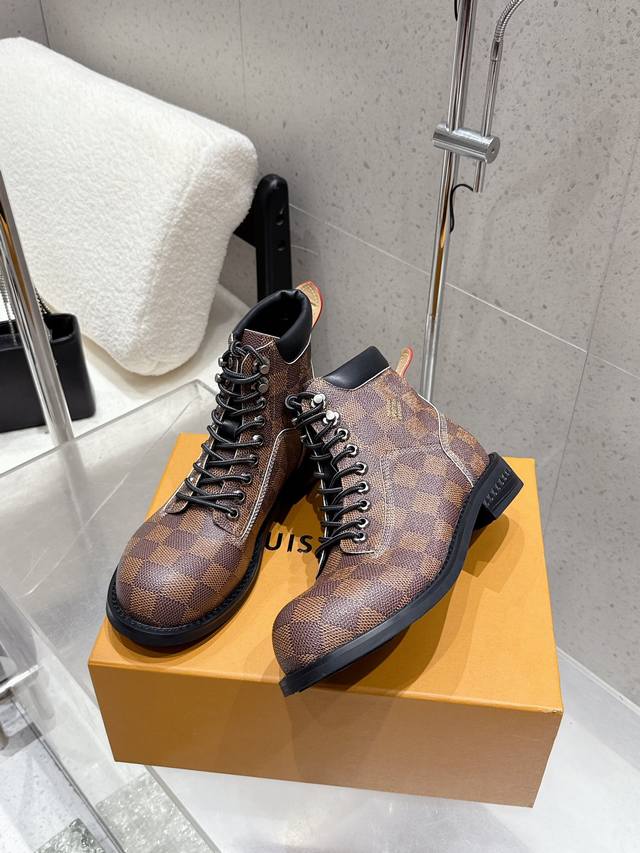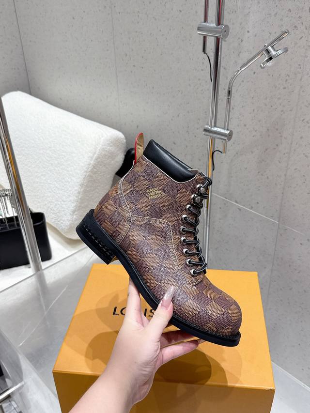 Louis Vuitton 25Ss Autumn and Winter New Lv Couple's Round Toe Lace-up Martin Boots Short Boots Nude Boots