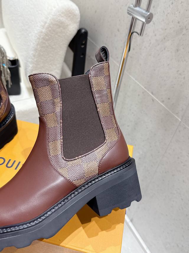 Louis Vuitton 25Ss autumn and winter new Lv round toe elastic band one-step short boots nude boots