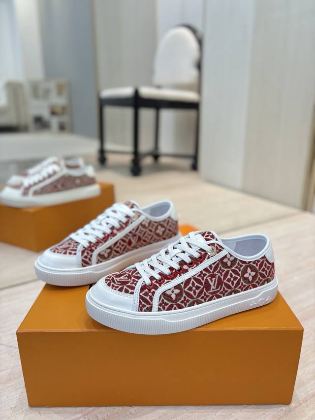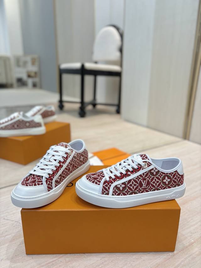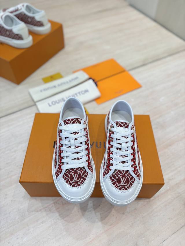 Factory Price: Couple Style, Top Version. Louis Vuitton (LV) Lagoon Series Thick-Soled Denim Embossed Monogram Canvas Casual Sneakers/Skateboard Shoes. Original purchase and development. This Lagoon sneaker uses Monogram denim, injecting a retro feel into the classic design. Leather trim features the Louis Vuitton logo, while the eyelets, trim, and laces showcase meticulous details. The rubber outsole adorned with Monogram flowers completes the overall look. Material: Original imported custom top-grain cowhide. Lining: Original imported cowhide lining. Outsole: Original molded anti-slip TPU material. Sole thickness: 2.5cm. Sizes: 35-45 (Women's 40, 41, 42; Men's 39, 45 - no returns/exchanges). Packaging: Delivered with exquisite boutique packaging.