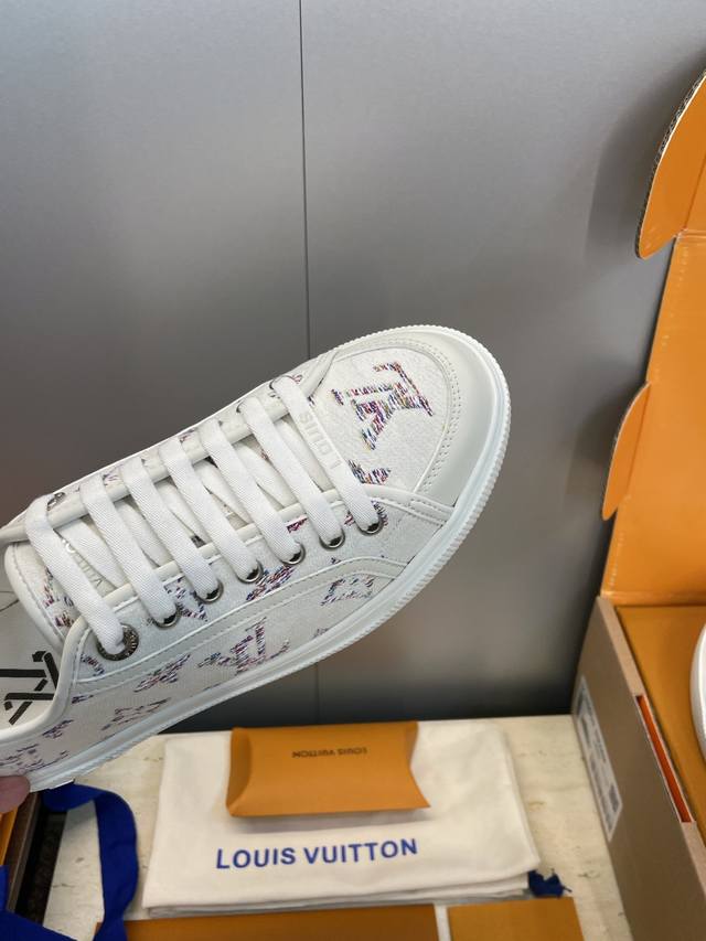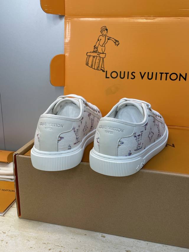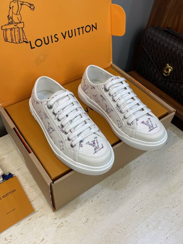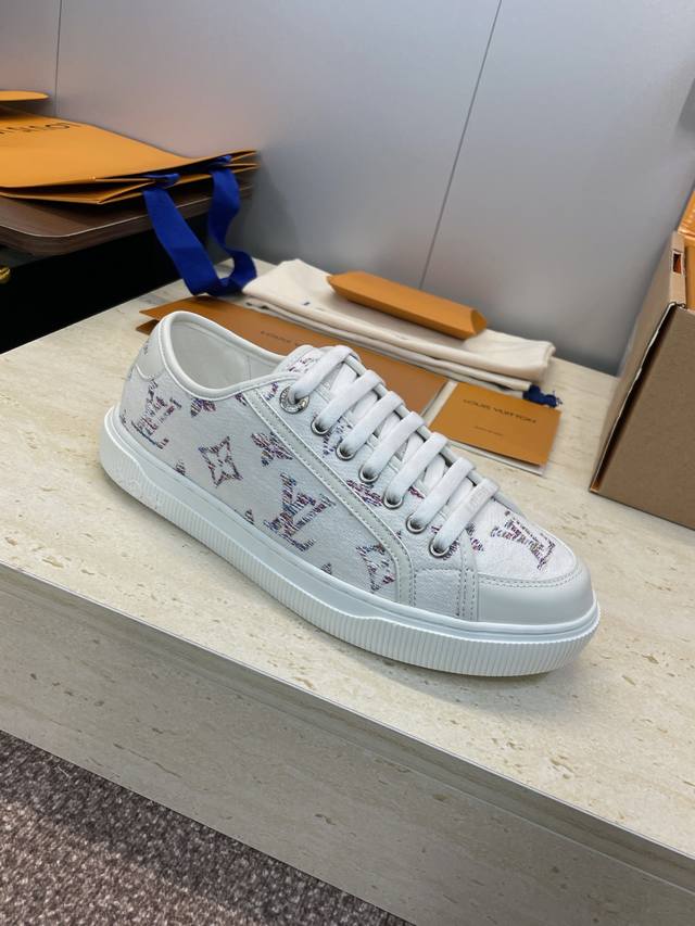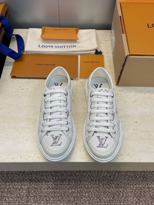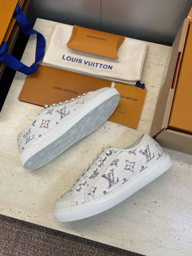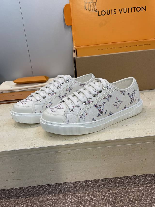 Louis Vuitto* 2025 Autumn/Winter Haute Couture New Series Flat Lace-up Casual Sports Women's Shoes Lv Logo Round Toe Color Block Skateboard Shoes