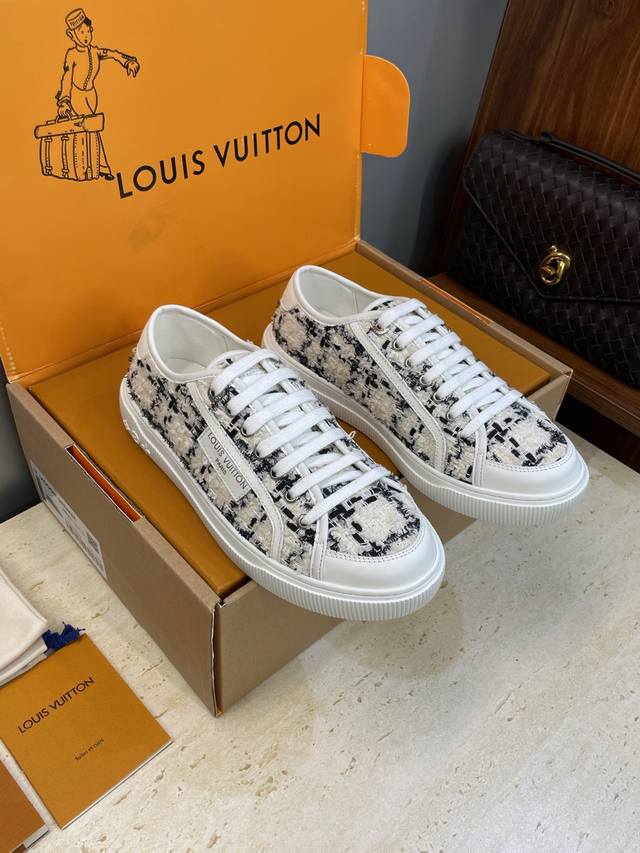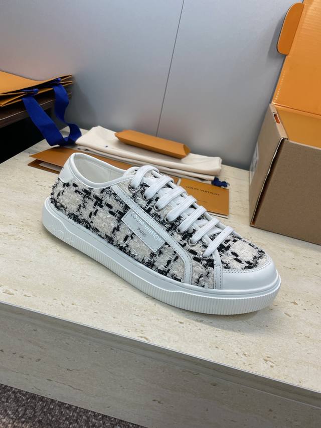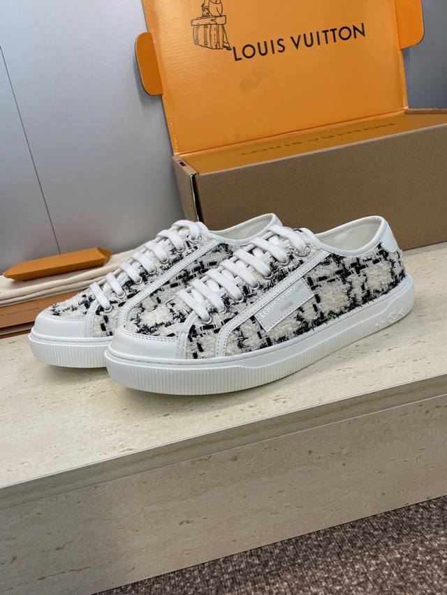 Louis Vuitto* 2025 Autumn/Winter Haute Couture New Series Flat Lace-up Casual Sports Women's Shoes Lv Logo Round Toe Color Block Skateboard Shoes