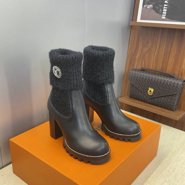 Factory price DDD Louis Vuitton* 2025 Autumn/Winter New Chelsea Style Stretch Motorcycle Ankle Boots LV Logo Thick Sole High Heel Color Block Slip-on Wool Sleeve Martin Rider Boots DDD Material: Imported calfskin upper + water-dyed cowhide lining + original mold genuine leather welt combination outsole DDD Heel height: 10.5Cm DDD Size: Women's sizes 35-42 42 custom sizes are non-refundable DDD