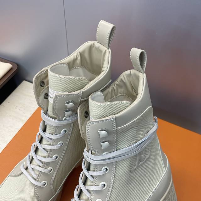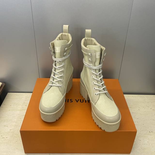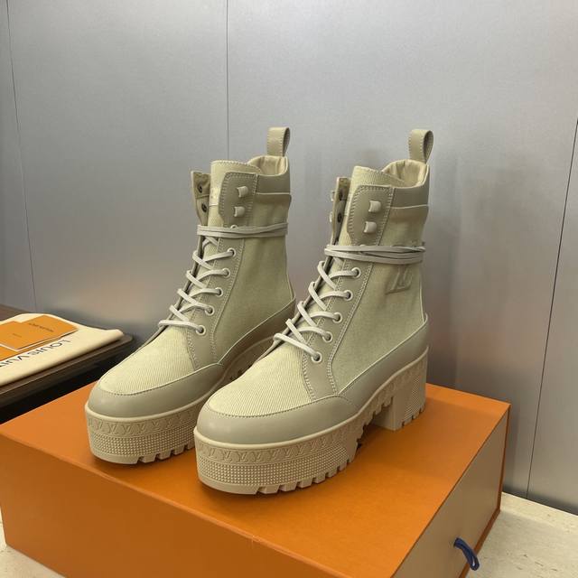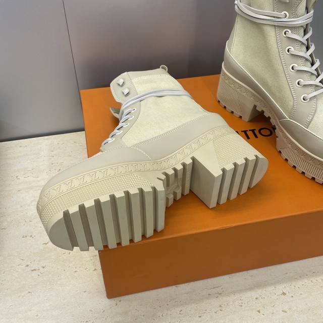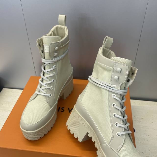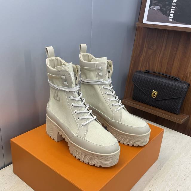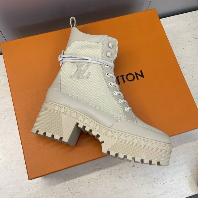 Factory price DDD Louis Vuitton* 2025 Autumn/Winter New Lace-up Motorcycle Ankle Boots Lv Logo Thick Sole Low Heel Waterproof Platform Color Block Riding Boots DDD Material: Imported calfskin upper, imported environmentally friendly breathable technical fabric + water-dyed cowhide lining + original molded outsole DDD Heel height: 6cm DDD Size: Women's sizes 35-42 42 custom sizes are non-refundable DDD