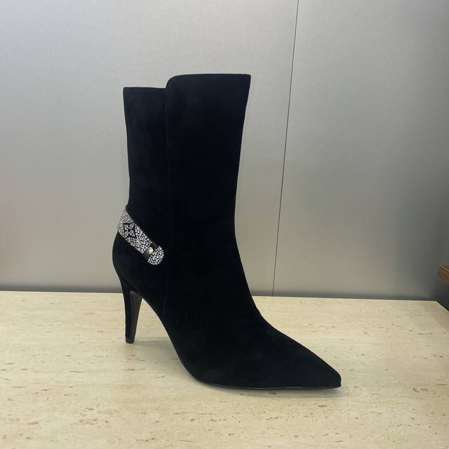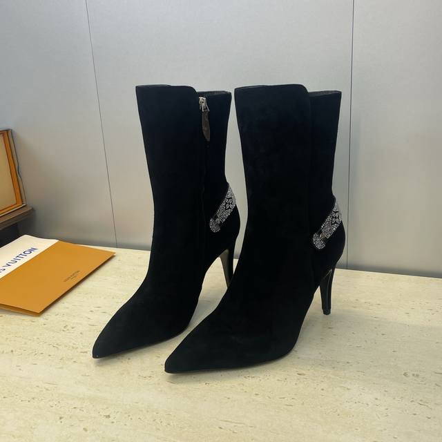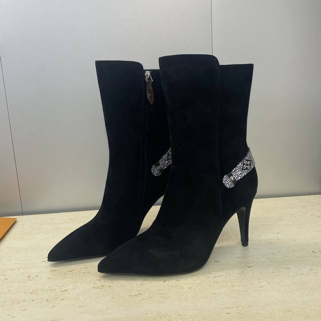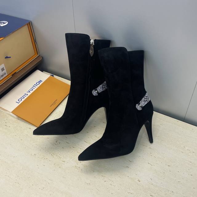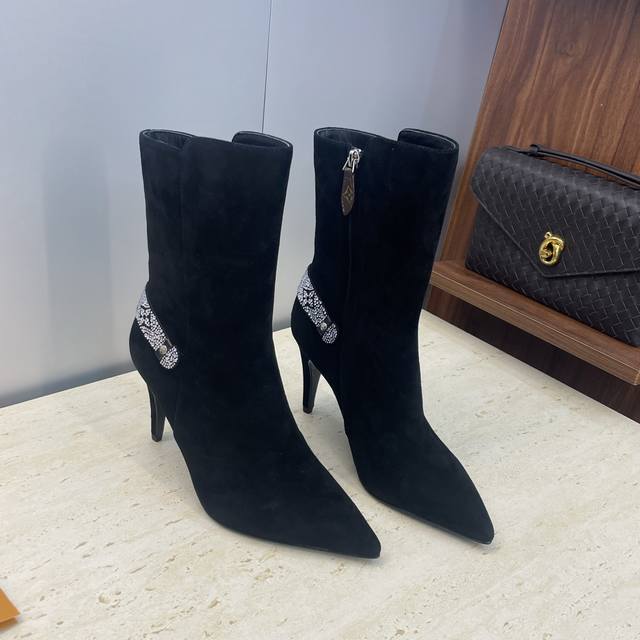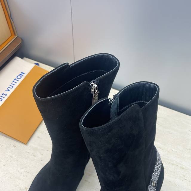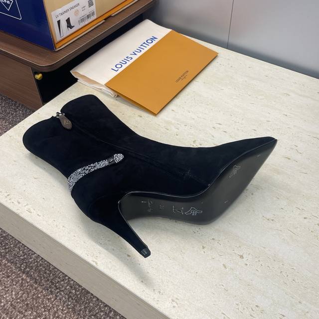 Factory Price DDD Louis Vuitton* 2025 Autumn/Winter New Legacy Side Zipper Rhinestone Motorcycle and Ankle Boots LV Logo High Heel Pointed Toe Color Block Martin Rider Boots DDD Material: Imported calfskin upper, imported suede + imported environmentally friendly breathable fabric lining + water-dyed sheepskin insole + Italian genuine leather outsole DDD Heel height: 9.5cm DDD Size: Women's sizes 35-41, 40.41 custom sizes are non-refundable and non-exchangeable DDD
