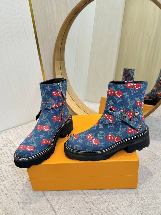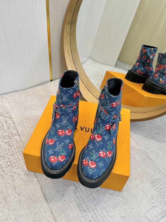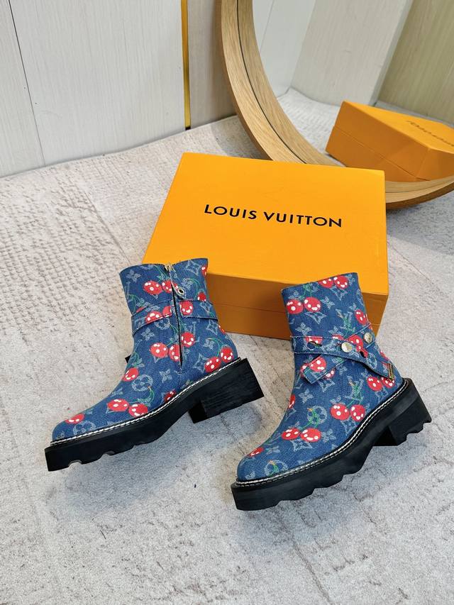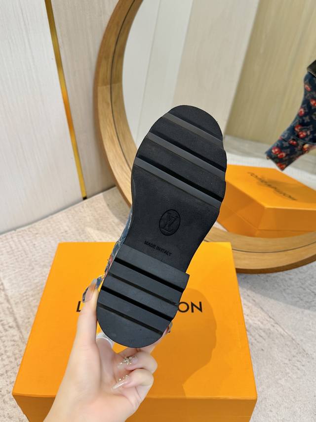 Louis Vuitton 2025 Fall/Winter High-End Custom-Made Boots, a classic design worn by numerous celebrities and influencers on runway shows. Exquisite craftsmanship, comfortable fit, and easy on and off with a side zipper. This Beaubourg ankle boot is crafted from smooth cowhide leather, featuring delicate straps and engraved buckles, highlighting a relaxed biker style. A chunky heel and lightweight micro-outsole accentuate the contrasting stitching. Outer material: Full-grain cowhide. Lining: Cowhide. Buckles: Original mold. Outsole: Original mold. Colors: Black, Brown. Sizes: 35-42.