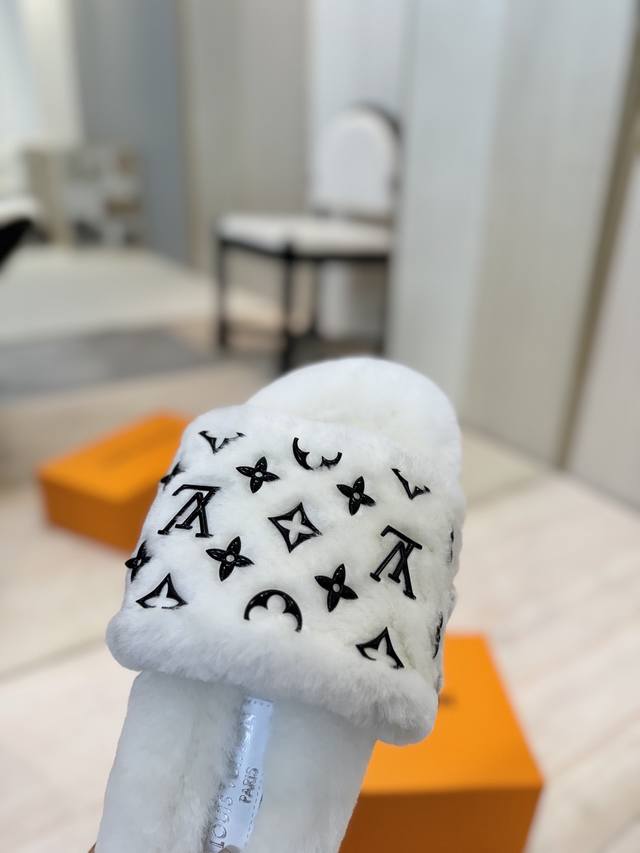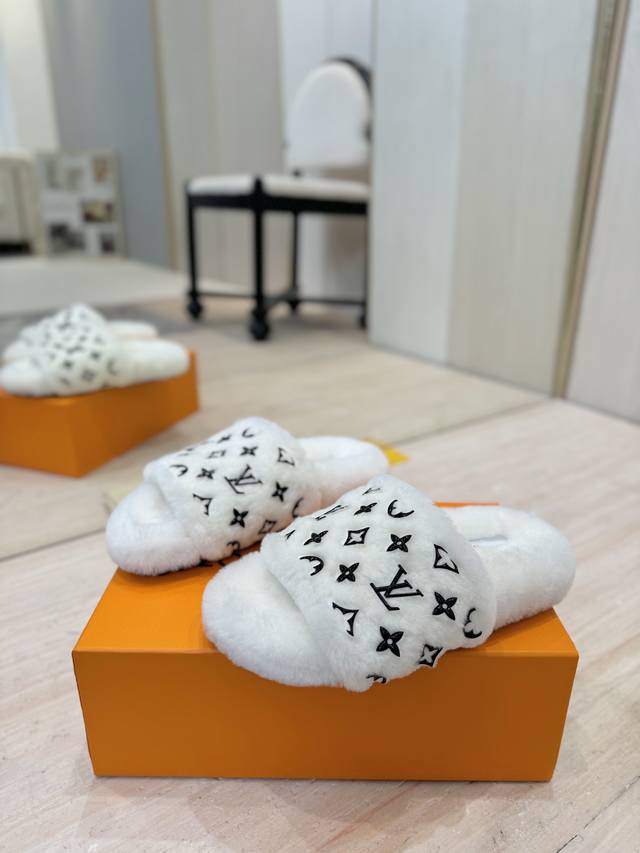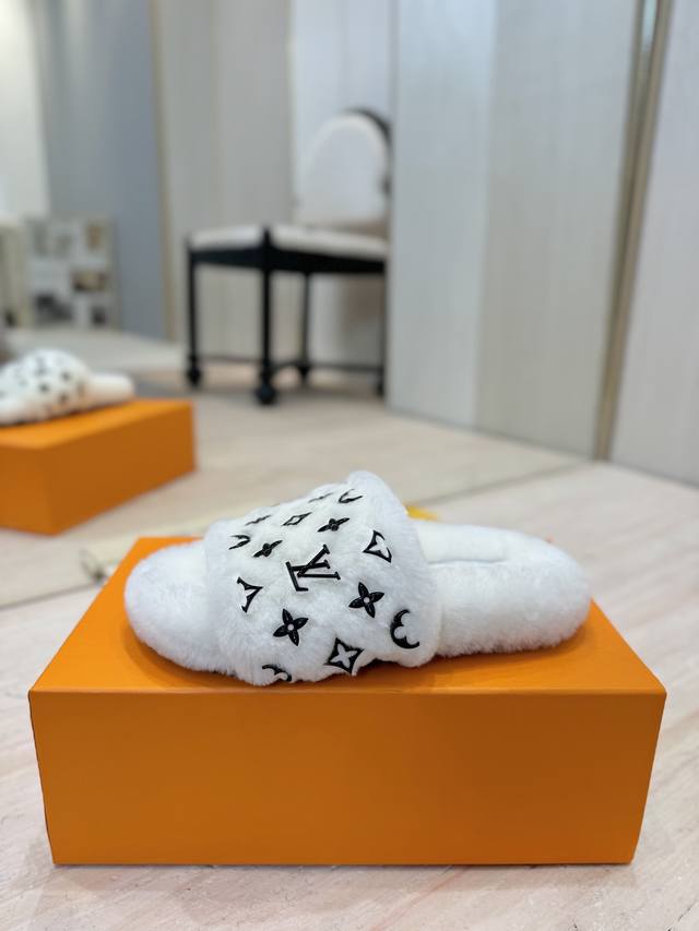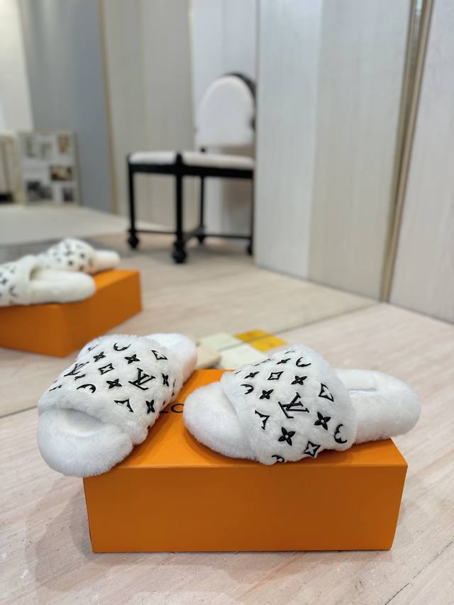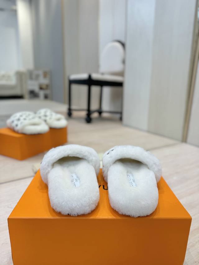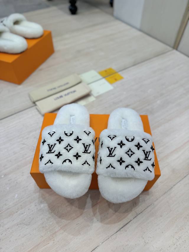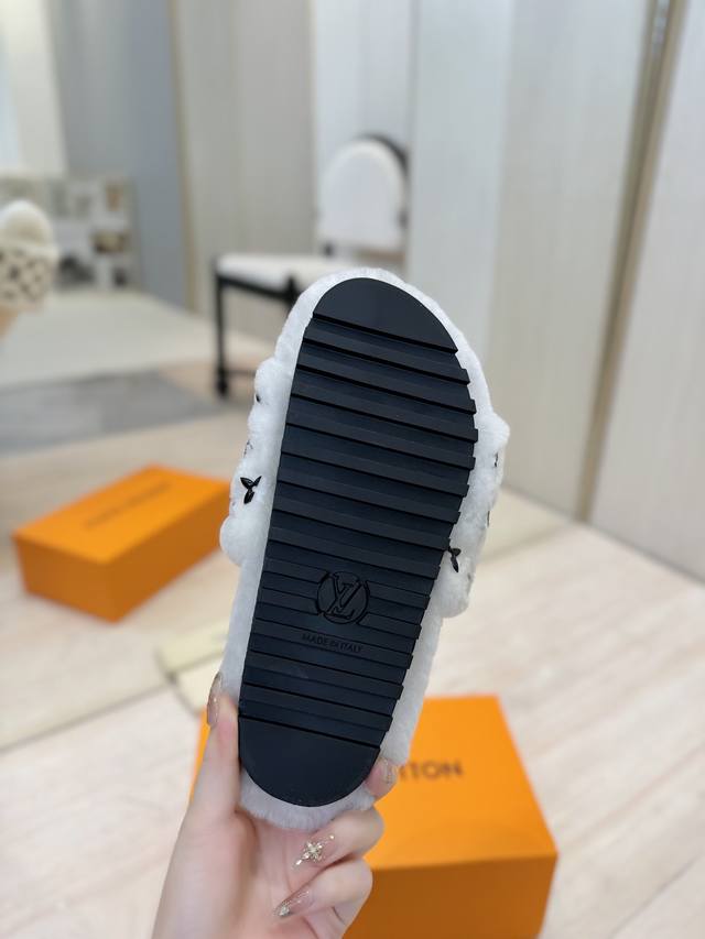 Factory Price: Louis Vuitton 2025 New Wool Slippers - Soft and Fine Wool, Top Quality Pure Fur Straight Hair! Super warm, wearing them feels like walking on clouds. Classic LV monogram embellishments, exquisite and high-end! This elevates the value of these slippers! The sole is an original molded EVA foam anti-slip outsole, very comfortable and non-slip, and the sole has a certain thickness for excellent comfort! Upper: Original imported wool with epoxy logo. Lining: Original imported wool. Insole: Original imported wool. Outsole: Original molded foam sole. Packaging: Original complete drawer box. Sizes: 35-40. Sizes 40 and 41 are custom-made and non-refundable .