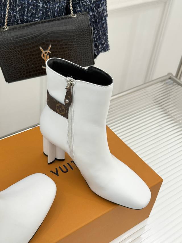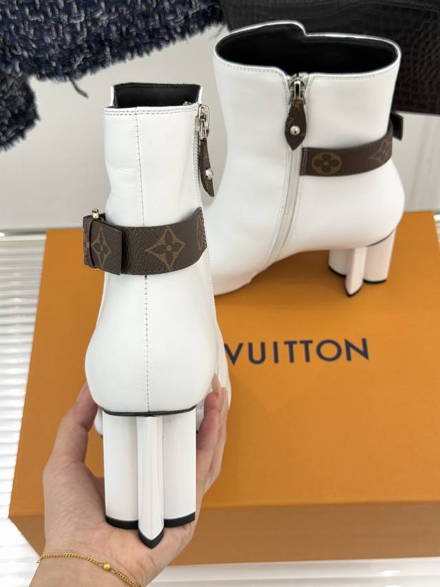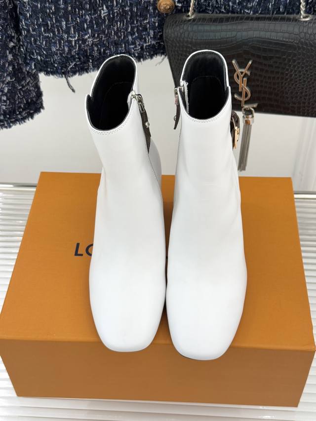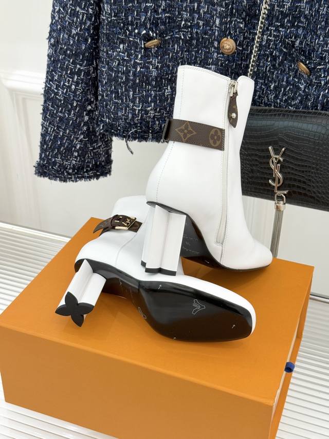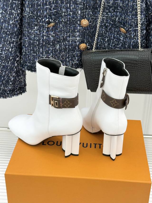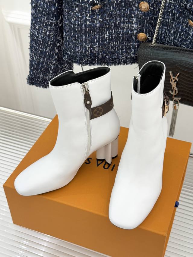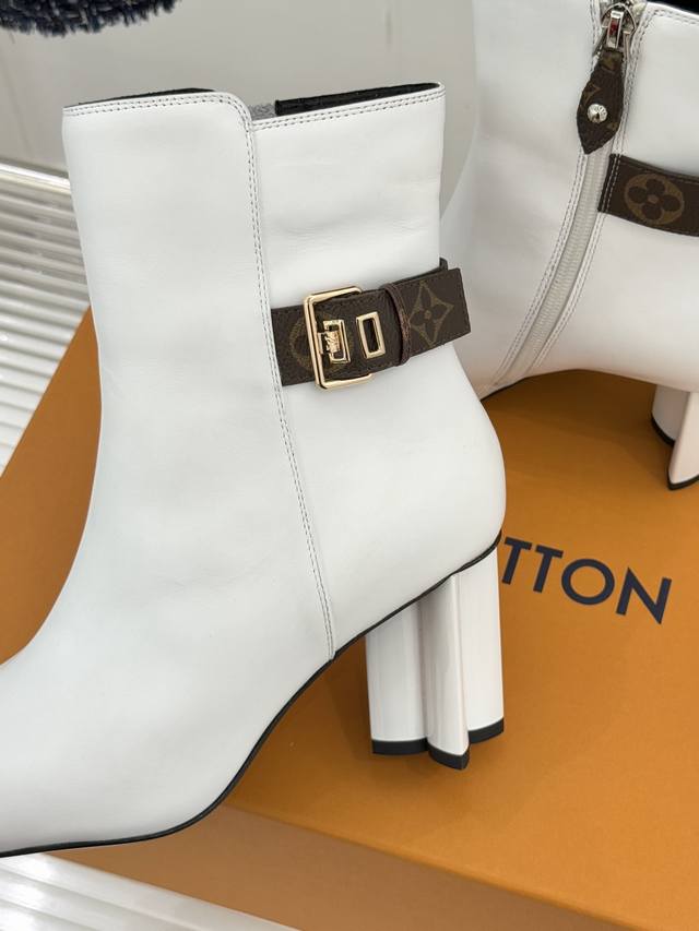 Louis Vuitton 25Wf Autumn/Winter New Arrival Monogram Buckle Square Toe Chunky Heel Ankle Boots