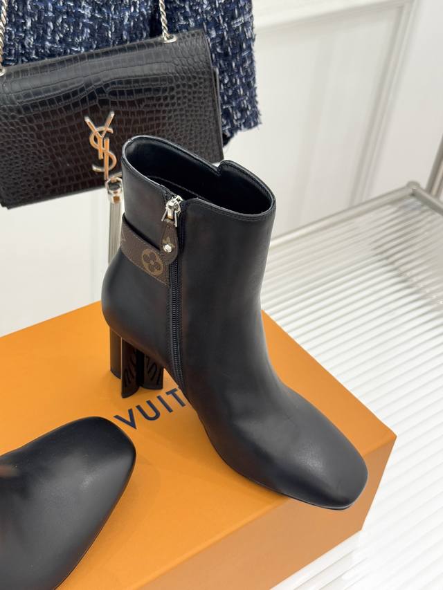 Louis Vuitton 25Wf Autumn/Winter New Arrival Monogram Buckle Square Toe Chunky Heel Ankle Boots