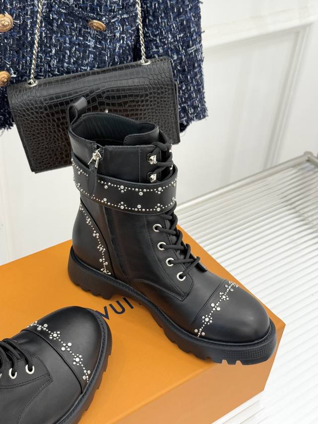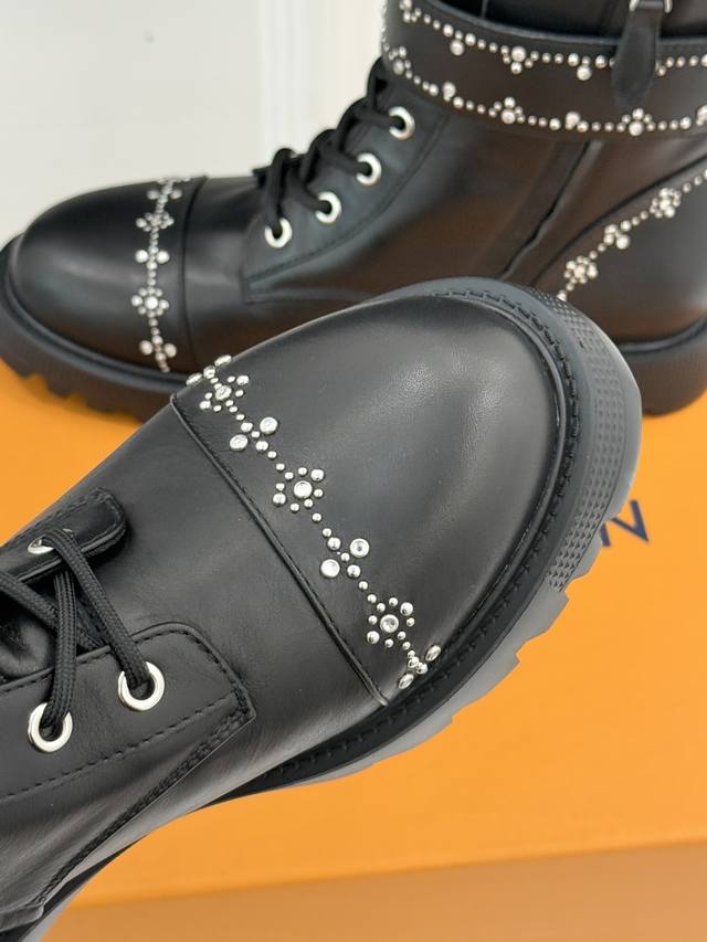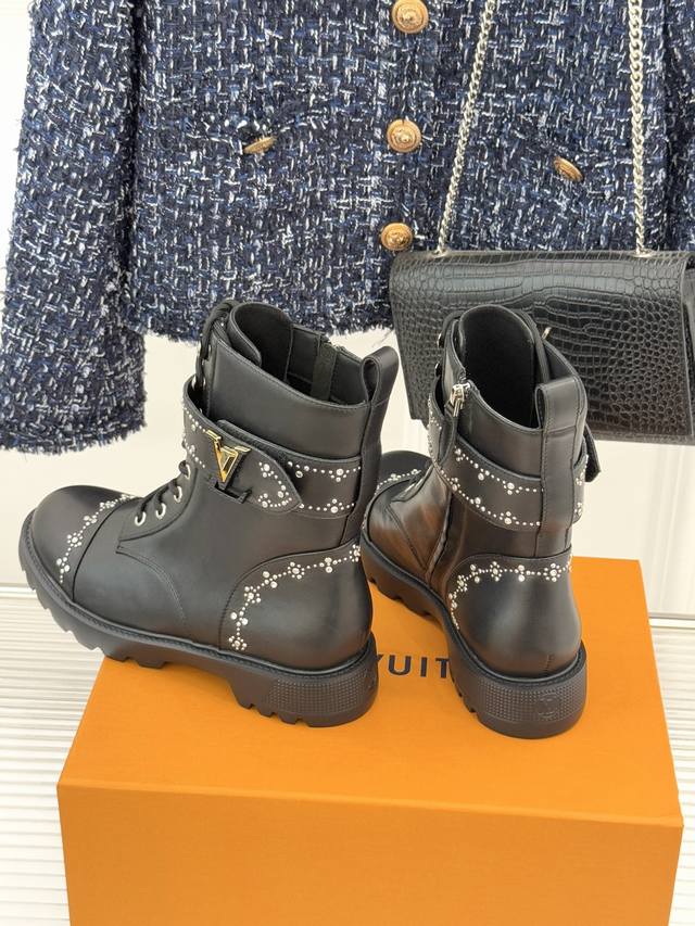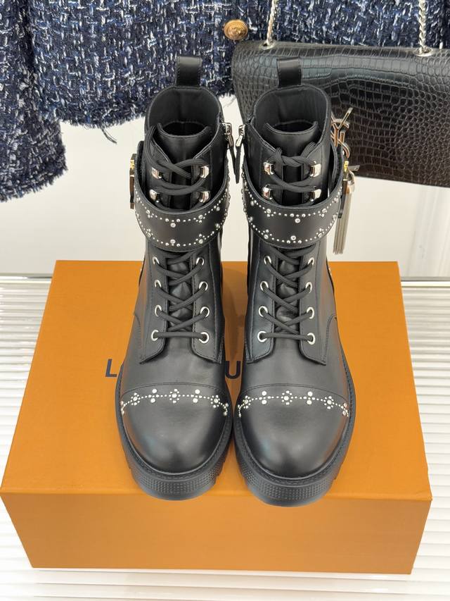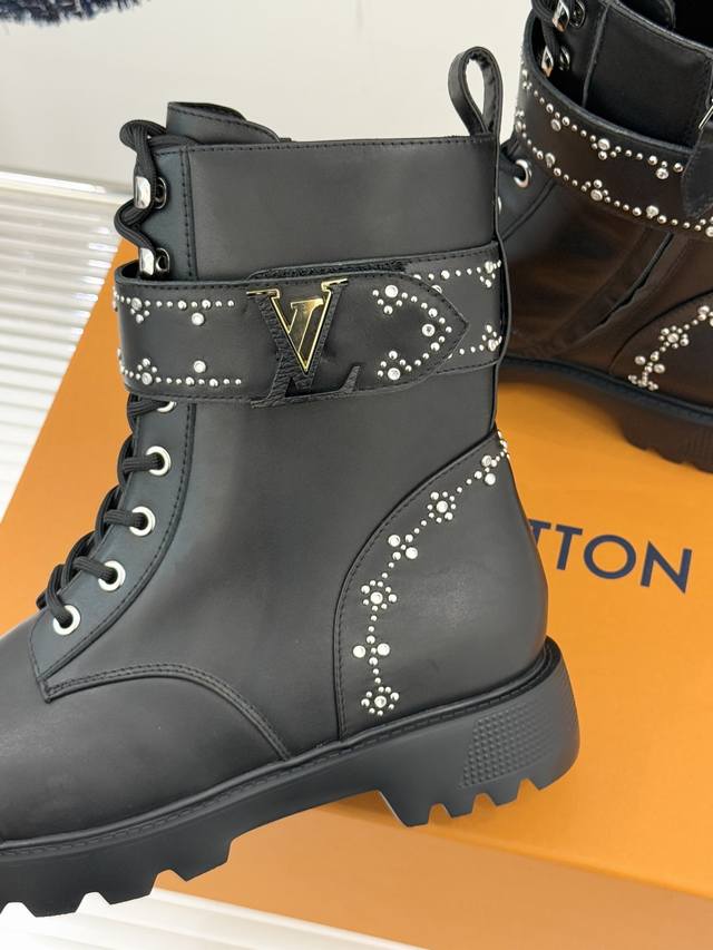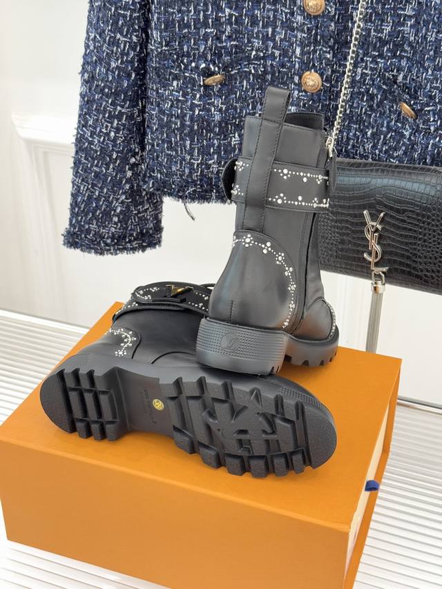 Louis Vuitton 25Wf Autumn/Winter New Arrival Rhinestone LV Belt Buckle Platform Martin Boots