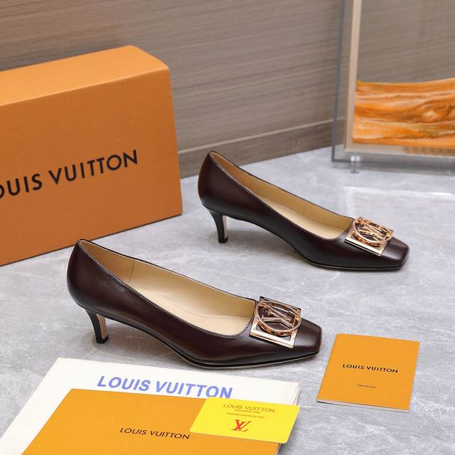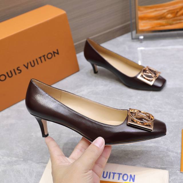 Louis Vuitton 25Wf Autumn/Winter New Square Buckle Square Toe High Heels