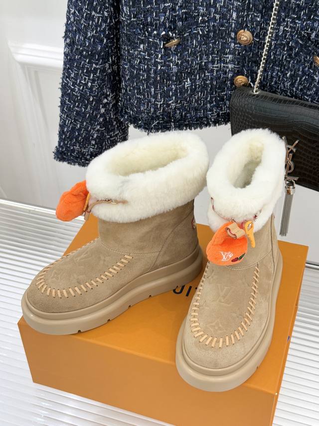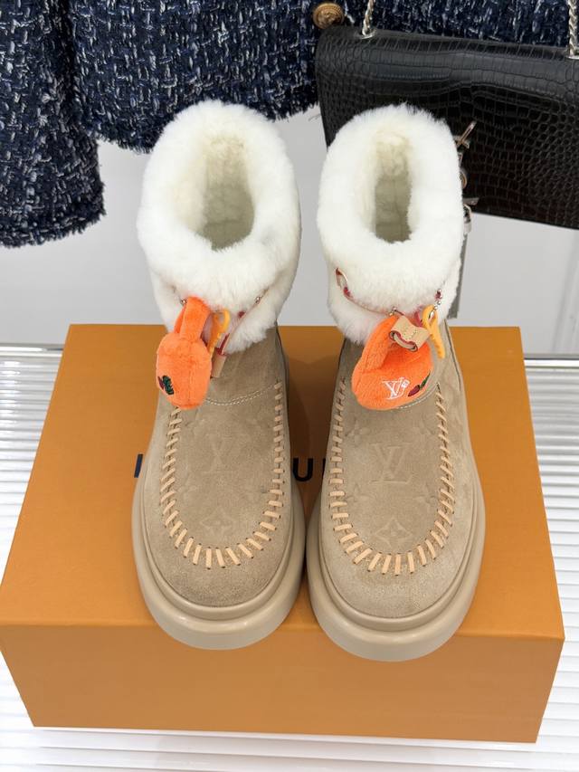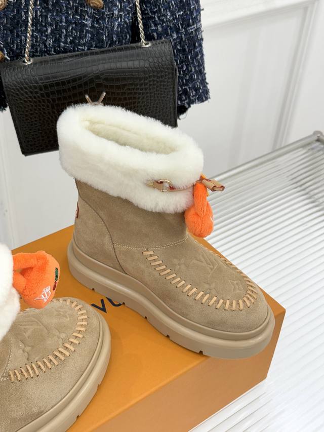 Factory Price DDD Louis Vuitton 25Wf New Embossed Key Bag Snow Boots DDD Promise me you'll get a pair, okay? DDD Everyday wear DDD There's nothing they can't match DDD The embossed logo on the toe adds a touch of sophistication DDD The shoe shape is truly worth recommending for a thousand years, it's very flattering to the foot shape DDD It looks cute, but it's a real powerhouse at concealing imperfections~ DDD I know many of you might think it'll be cold to wear in winter DDD But actually, it's quite warm with thick socks DDD The upper is made of original high-gloss cow suede DDD The adjustable T-strap provides a better fit on the instep DDD The inner lining is made of wool, the insole is soft and delicate DDD Stepping on them is a pleasure, especially wearing them barefoot, they're so comfortable DDD The outsole is the same as Yb, using a foam outsole DDD Size: 35-39 40 Custom DDD