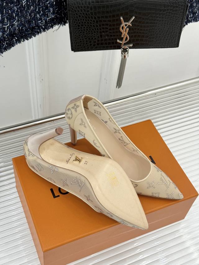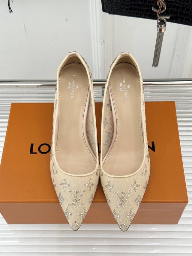 L*V Donkey Brand 25Wf New Spring/Summer Rhinestone Mesh Pointed-Toe Shoes