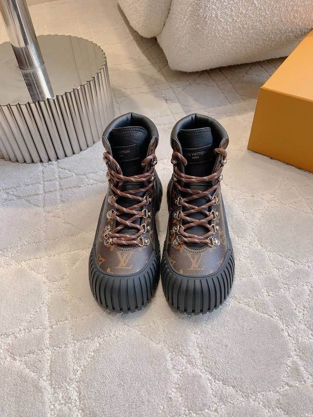 Factory Price p DDD Louis Vuitt*Classic Shell Toe Ankle Boots DDD The shoe has a cool look with a touch of playfulness and cuteness, making it easy to match and comfortable on the feet! It also has a good height-increasing effect! DDD Original cowhide upper with monogram canvas, original sheepskin lining, original mold, outsole. Sizes 35-39, 40, 41. Custom made DDD