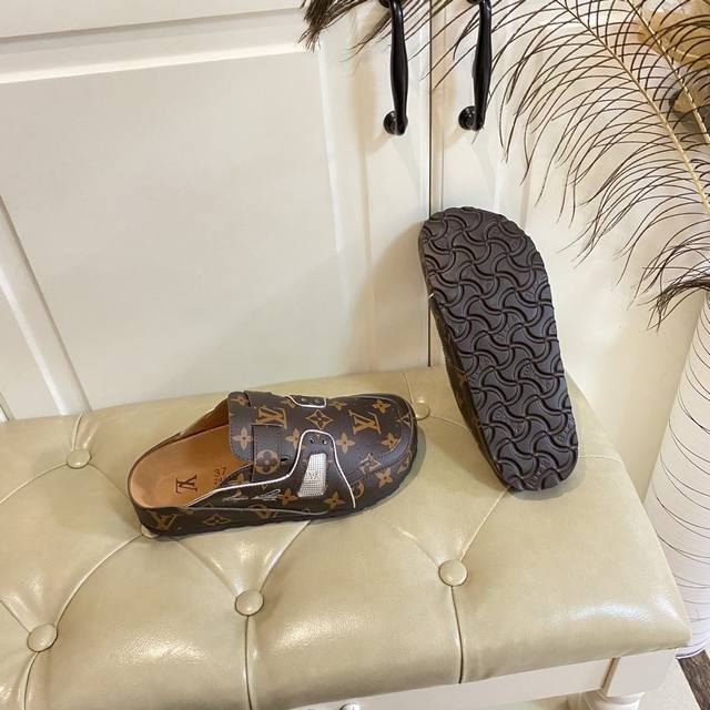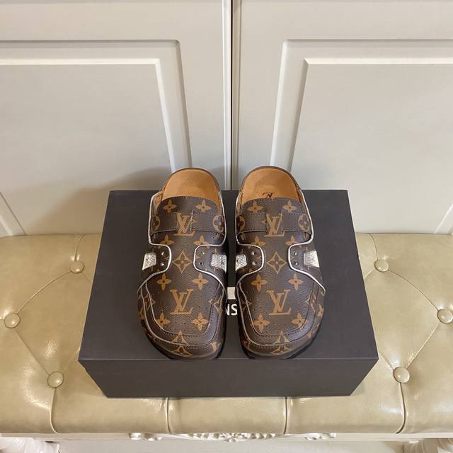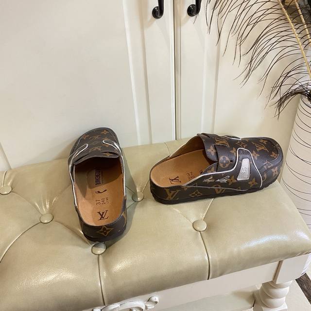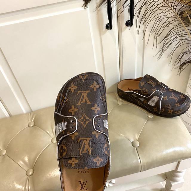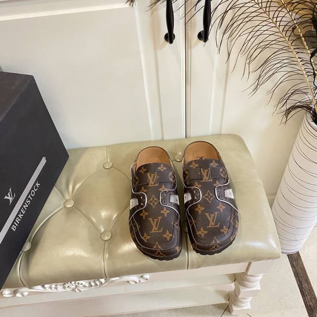 Factory Price P, Louis Vuitton & Birkensto collaboration couple's handbags and slippers, classic monogram suede, sizes 35-45