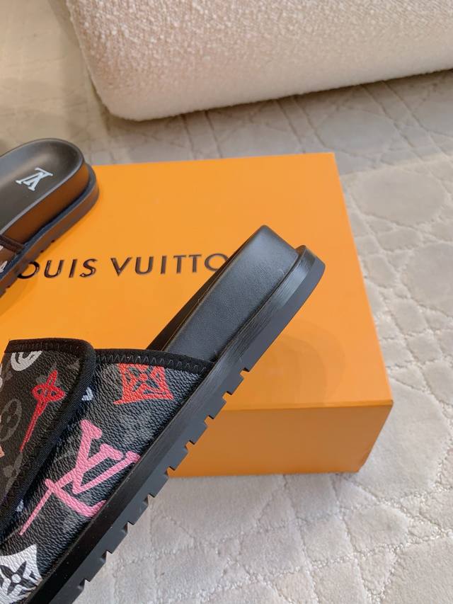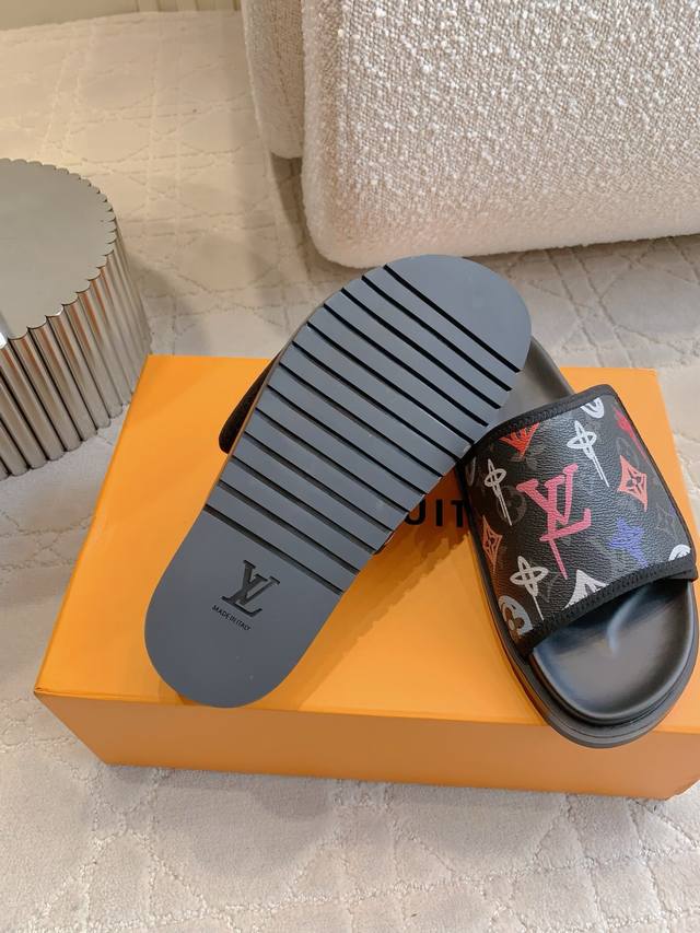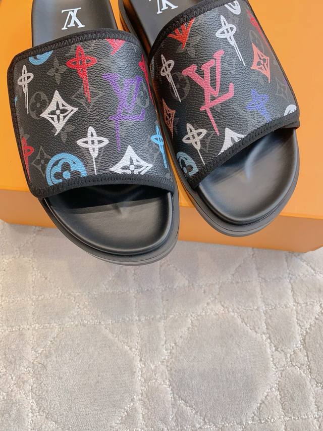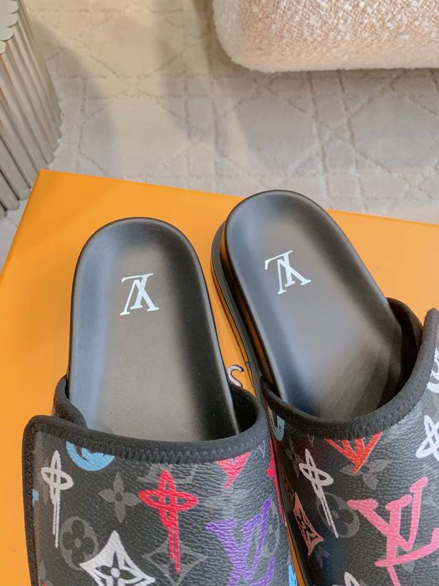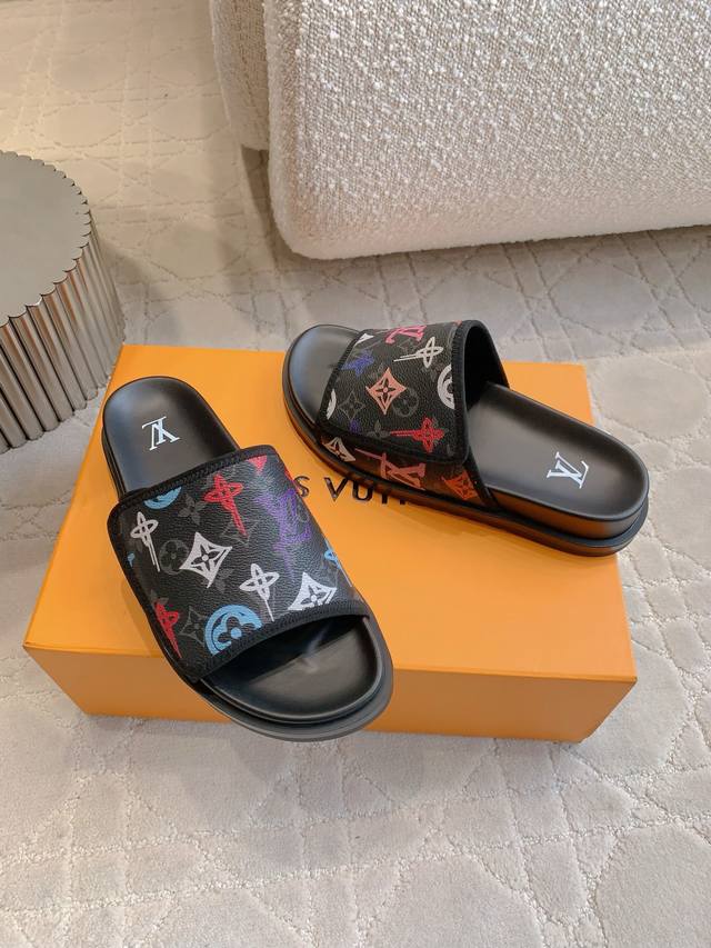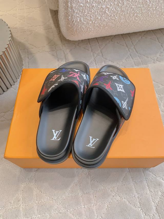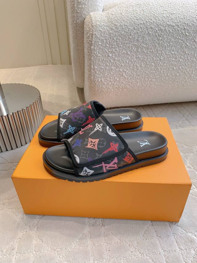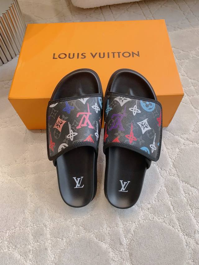 Louis Vuitt* Classic men's presbyopic beach slippers Velcro design Casual versatile style The whole pair of shoes is light and comfortable Zp purchase 1:1 replica size 39-44 38 45 custom