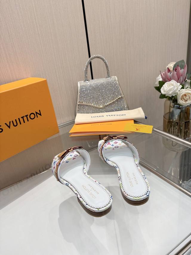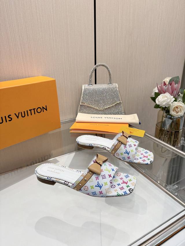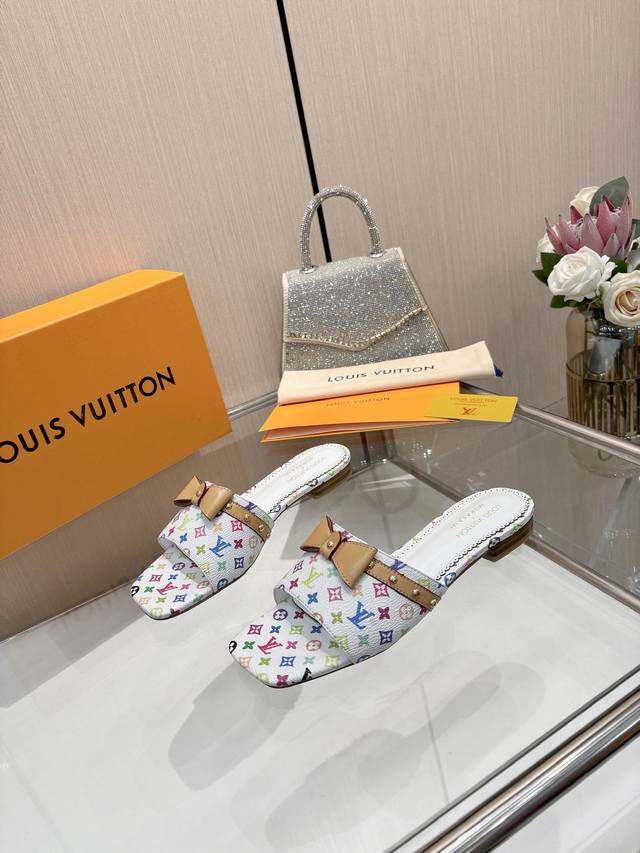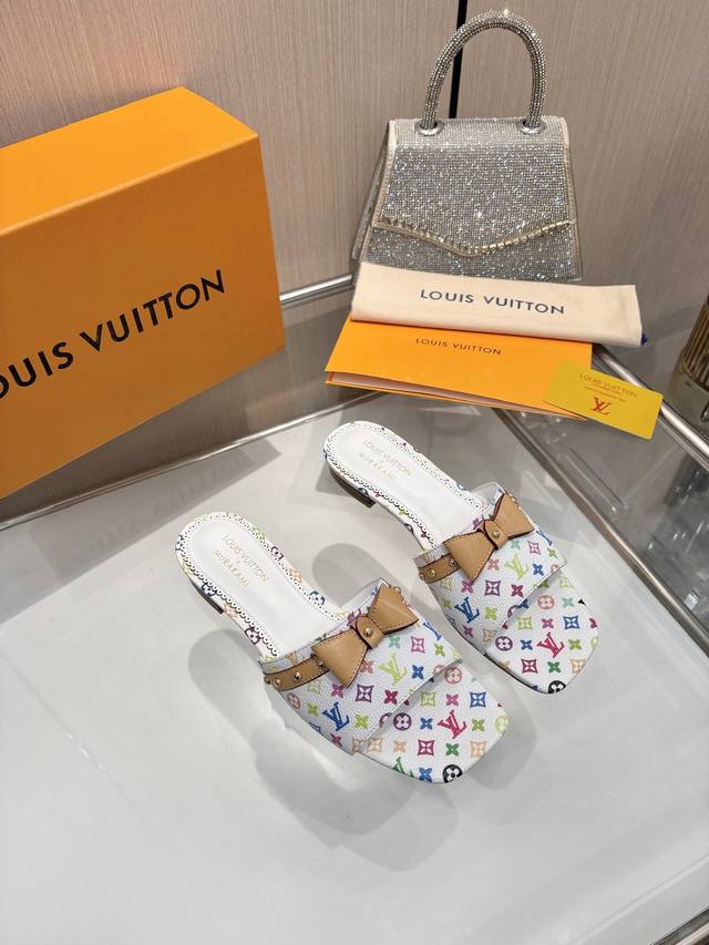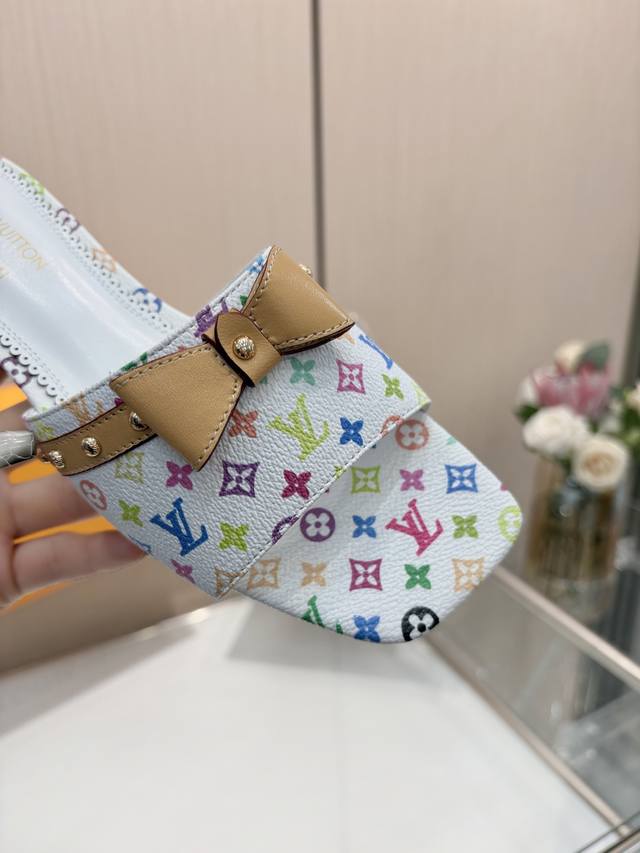Factory Wholesale: Louis Vuitton 2025 Official Early Spring Collection! Perfect last, new slippers, updated simultaneously with the official website. Lv hardware "Logo" and "bow" embellishments add a playful touch, full of detail, a visual feast that cannot conceal Lv's elegant temperament. Just right, comfortable to wear, new original mold last, perfect 1:1 shape, exquisite workmanship, imported high-end fabric presents a refined texture! Fabric: Imported lambskin, cow patent leather monogram denim; lining: high-quality soft lambskin; insole: imported goatskin; 1.5 layer leather heel; Italian genuine leather outsole. Sizes: 34-41 (34, 40, 41). Custom orders are non-refundable and non-exchangeable.