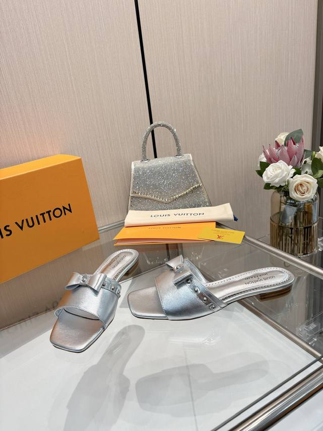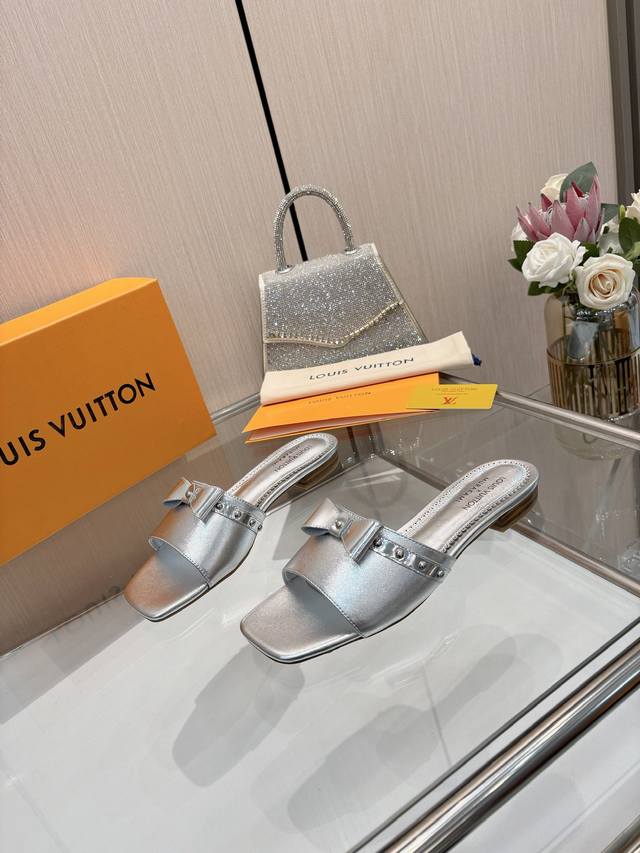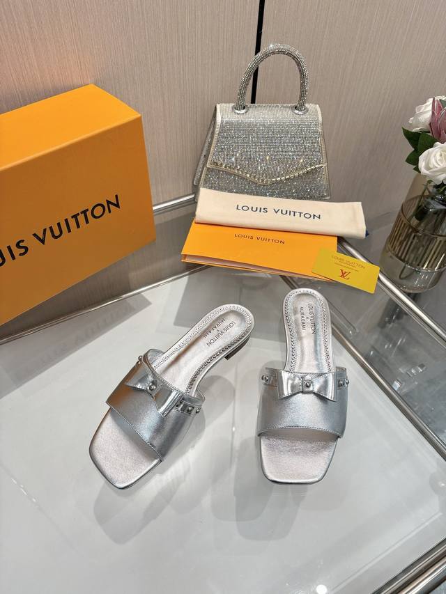 Factory Wholesale: Louis Vuitton 2025 Official Early Spring Collection! Perfect last, new slippers, updated simultaneously with the official website. Lv hardware "Logo" and "bow" embellishments add a playful touch, full of detail, a visual feast that cannot conceal Lv's elegant temperament. Just right, comfortable to wear, new original mold last, perfect 1:1 shape, exquisite workmanship, imported high-end fabric presents a refined texture! Fabric: Imported lambskin, cow patent leather monogram denim; lining: high-quality soft lambskin; insole: imported goatskin; 1.5 layer leather heel; Italian genuine leather outsole . Sizes: 34-41 (34, 40, 41). Custom orders are non-refundable and non-exchangeable.