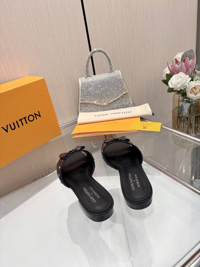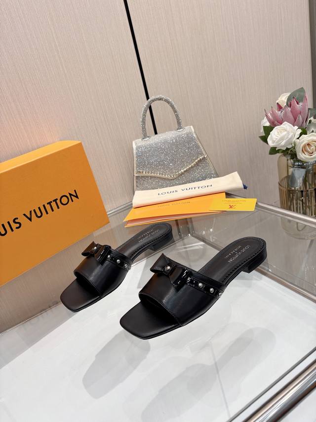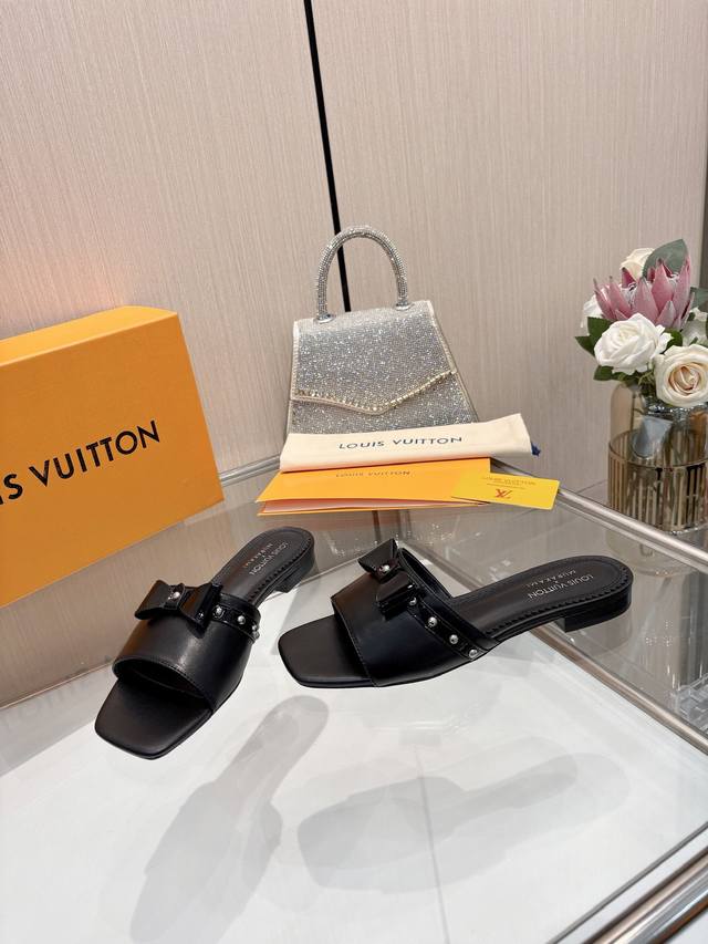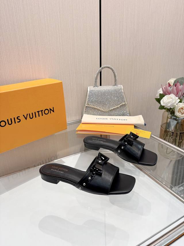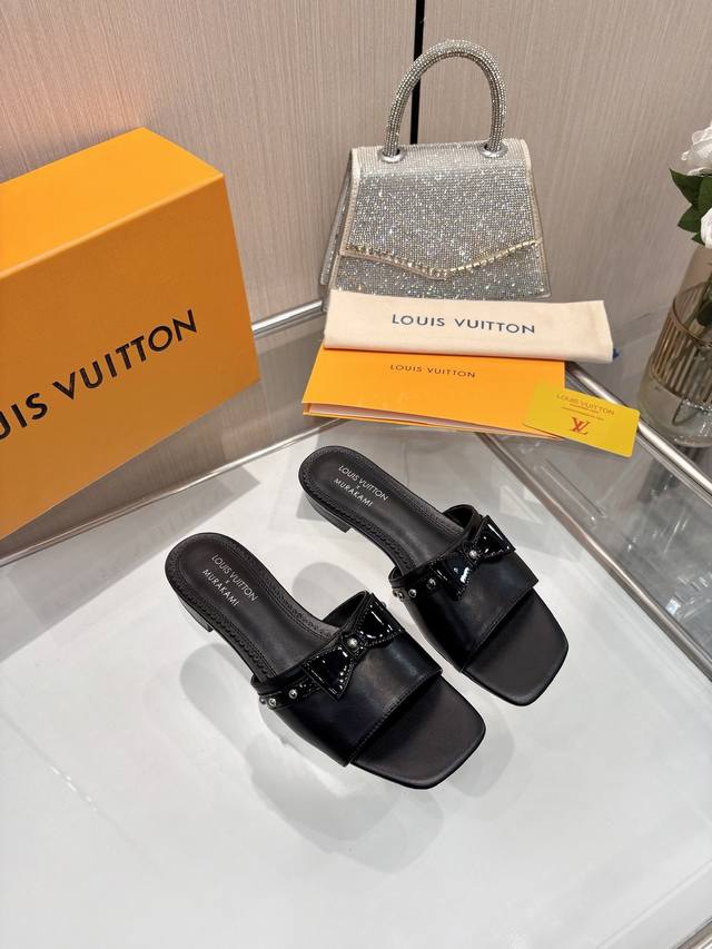 Factory Wholesale: Louis Vuitton 2025 Official Early Spring Collection! Perfect last, new slippers, updated simultaneously with the official website. Lv hardware "Logo" and "bow" embellishments add a playful touch, full of detail, a visual feast that cannot conceal Lv's elegant temperament. Just right, comfortable to wear, new original mold last, perfect 1:1 shape, exquisite workmanship, imported high-end fabric presents a refined texture! Fabric: Imported lambskin, cow patent leather monogram denim; lining: high-quality soft lambskin; insole: imported goatskin; 1.5 layer leather heel; Italian genuine leather outsole. Sizes: 34-41 (34, 40, 41). Custom orders are non-refundable and non-exchangeable.