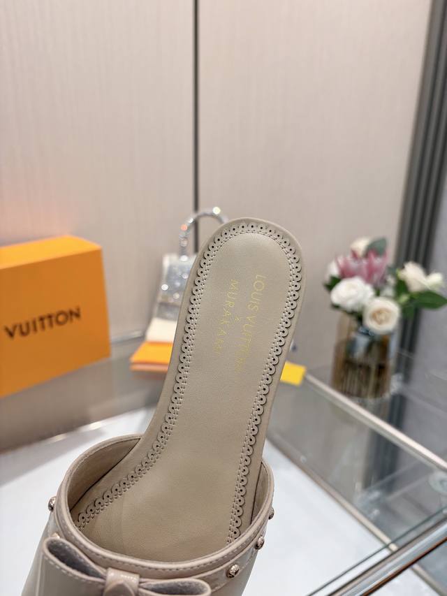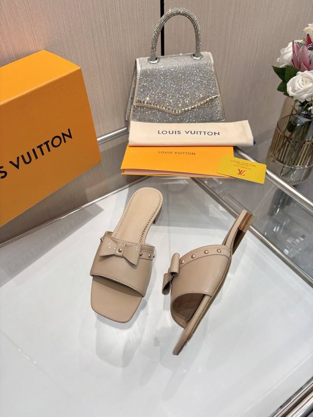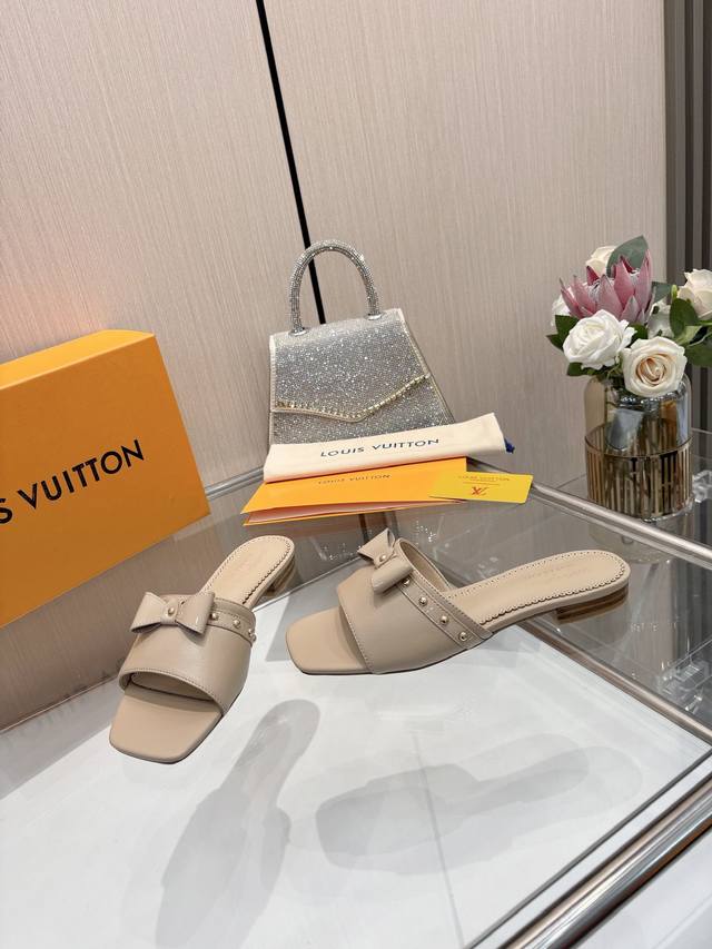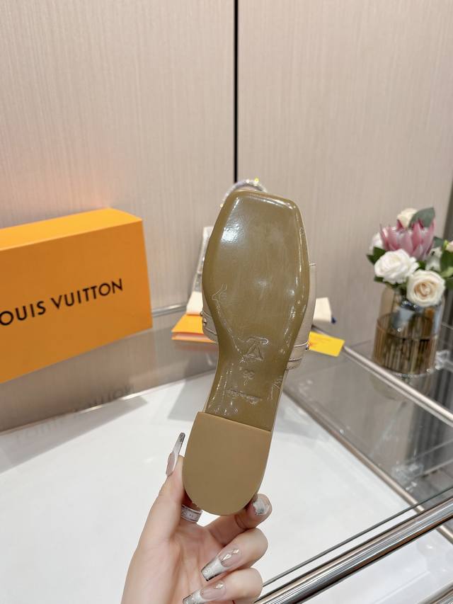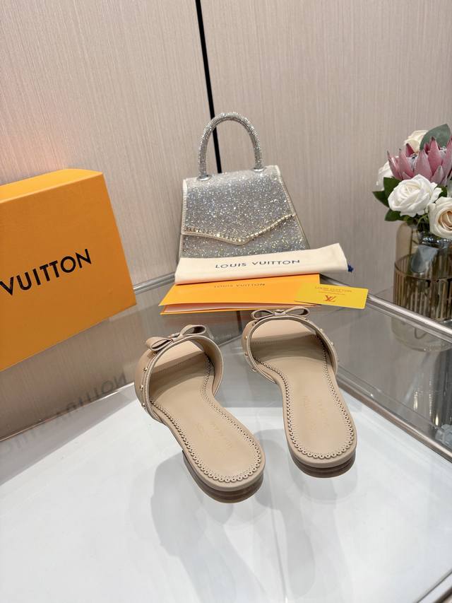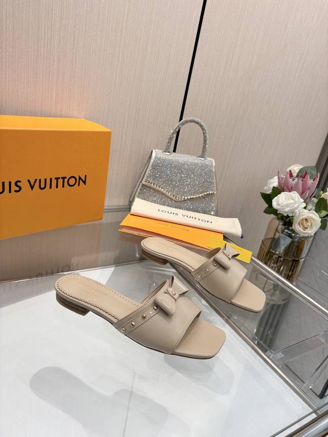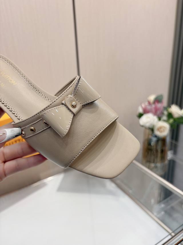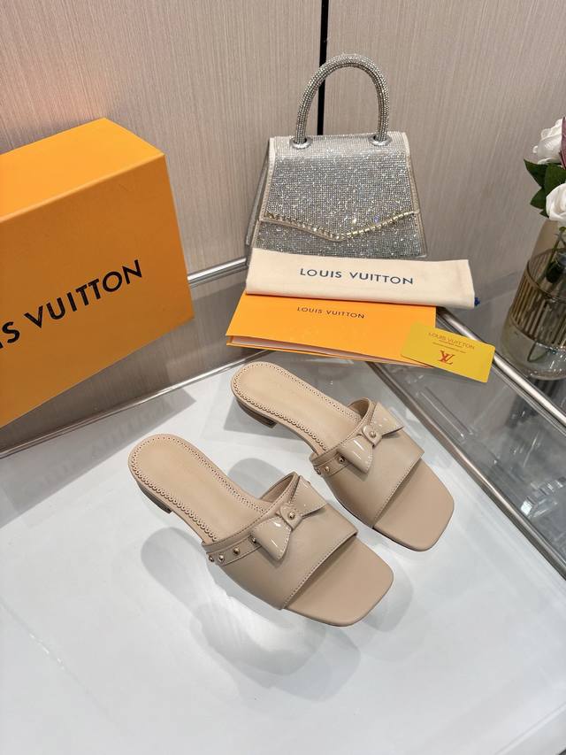 Factory Wholesale: Louis Vuitton 2025 Official Early Spring Collection! Perfect last, new slippers, updated simultaneously with the official website. Lv hardware "Logo" and "bow" embellishments add a playful touch, full of detail, a visual feast that cannot conceal Lv's elegant temperament. Just right, comfortable to wear, new original mold last, perfect 1:1 shape, exquisite workmanship, imported high-end fabric presents a refined texture! Fabric: Imported lambskin, cow patent leather monogram denim; lining: high-quality soft lambskin; insole: imported goatskin; 1.5 layer leather heel; Italian genuine leather outsole. Sizes: 34-41 (34, 40, 41). Custom orders are non-refundable and non-exchangeable.