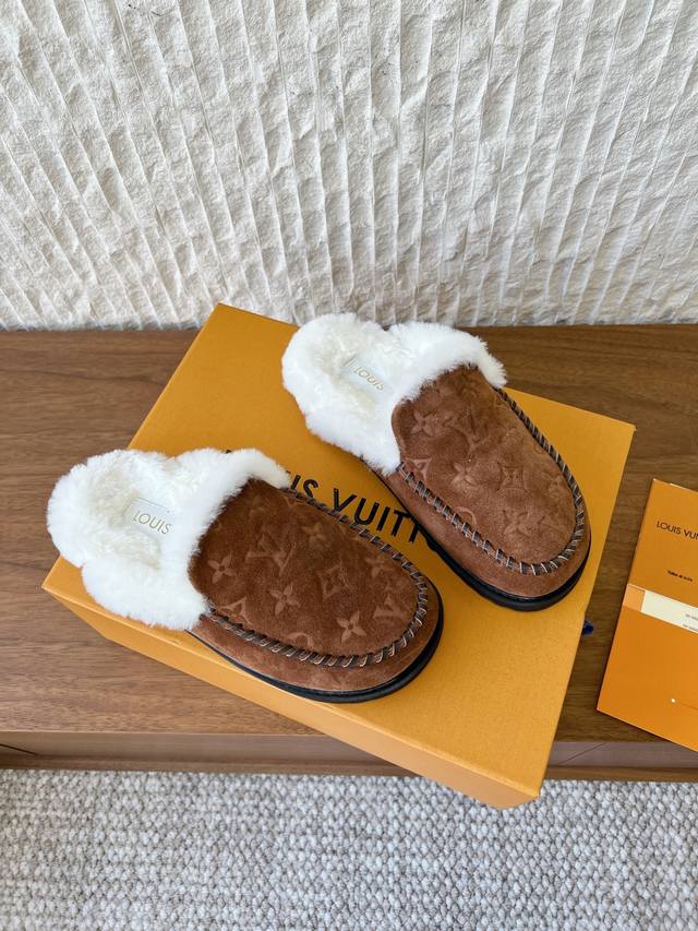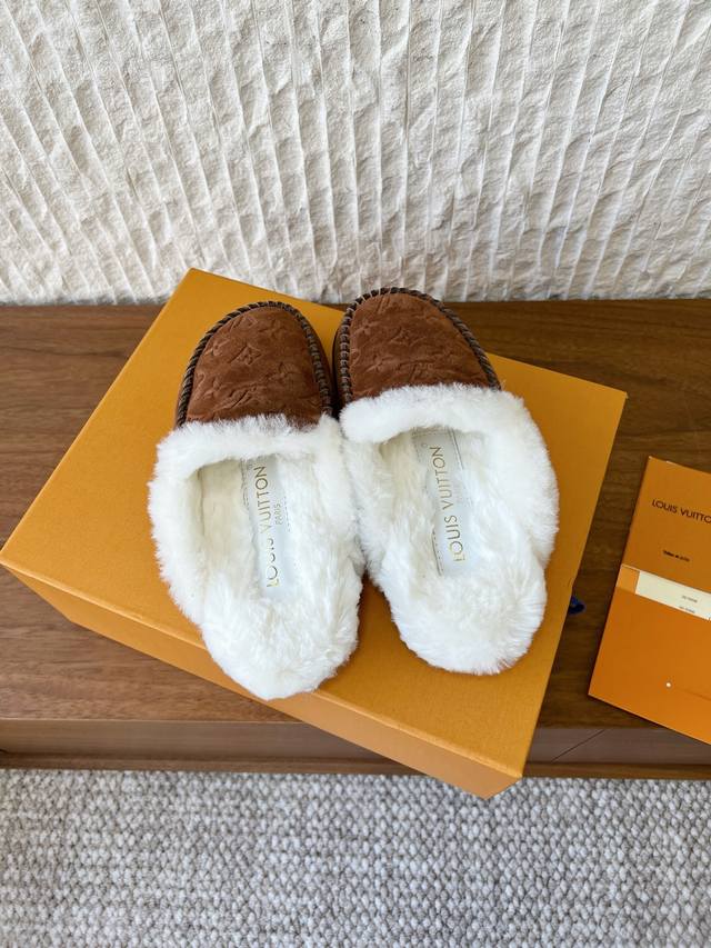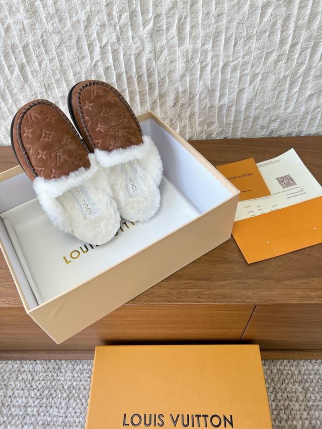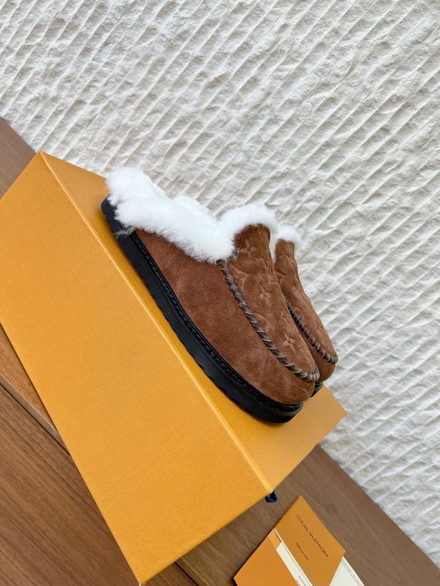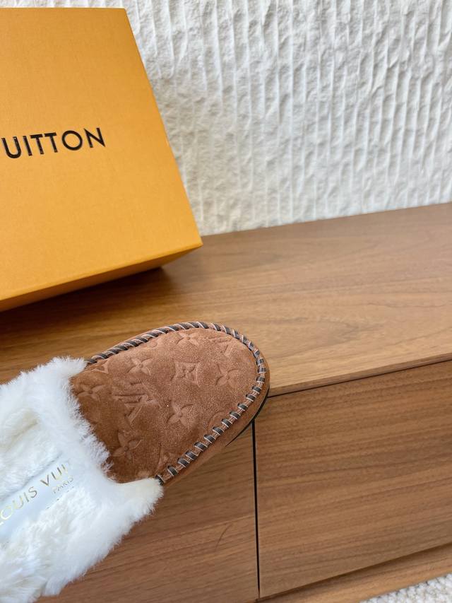 G530 Louis Vuitton 2025 Spring/Summer New LV Winter Ski Collection Monogram Snow Boots. Features a soft sheepskin lining for maximum warmth, a thick rubber sole for slip resistance and a 6cm height boost, perfect for cold weather, easy to slip on and off, and stylish with jeans or a down jacket. Comfortable and practical, a must-have for winter outings! Upper: Suede with embroidered monogram pattern. Lining: Original sheepskin lining. Sole: Original molded outsole. Size: 35-39. 40. Custom orders are non-refundable and non-exchangeable.